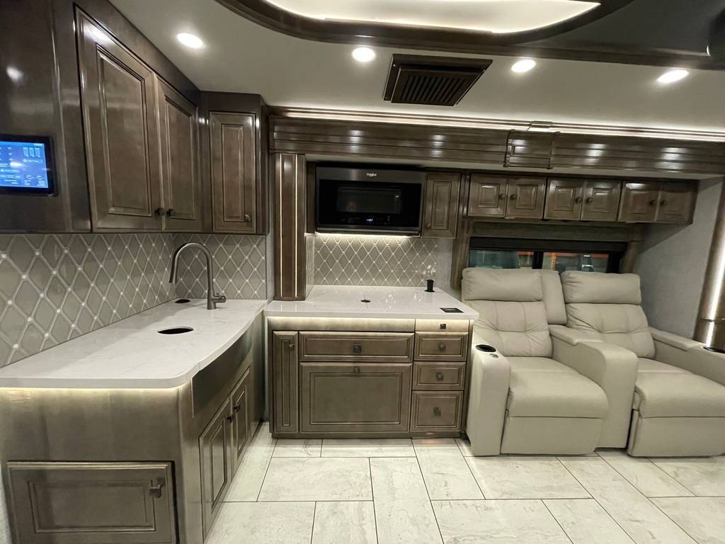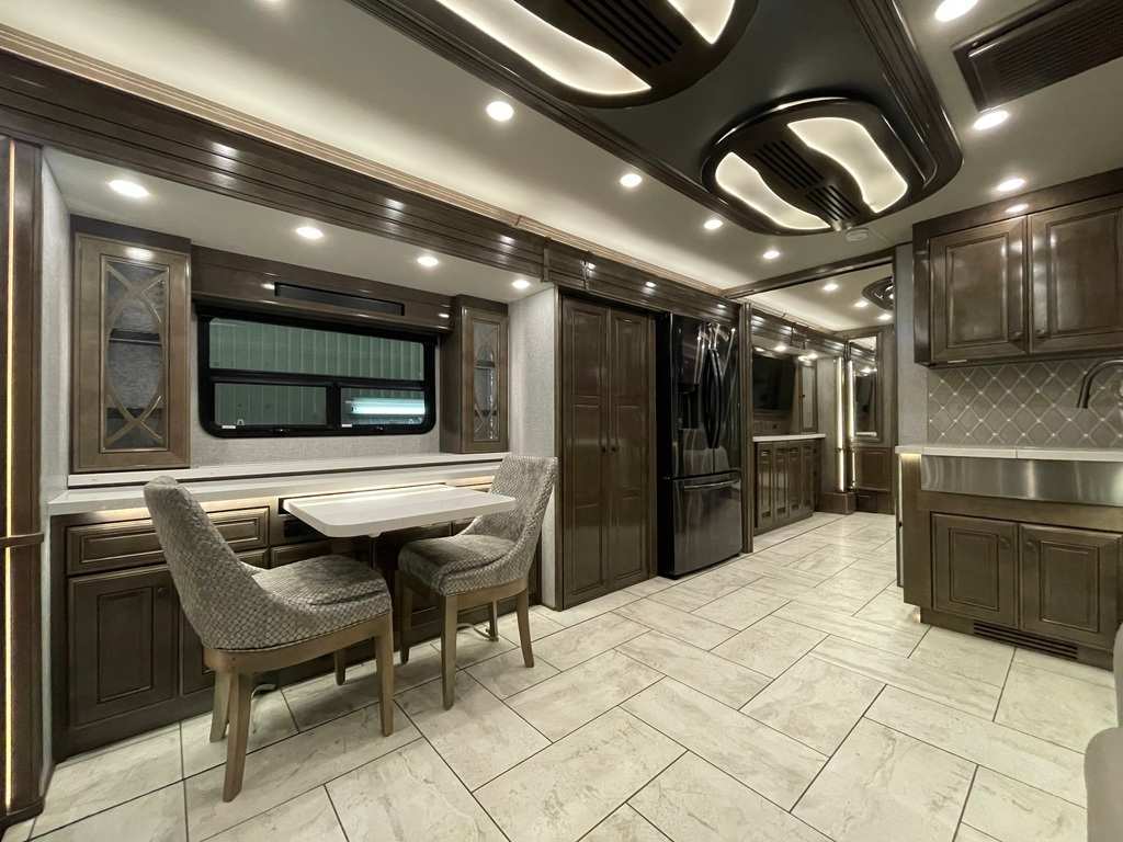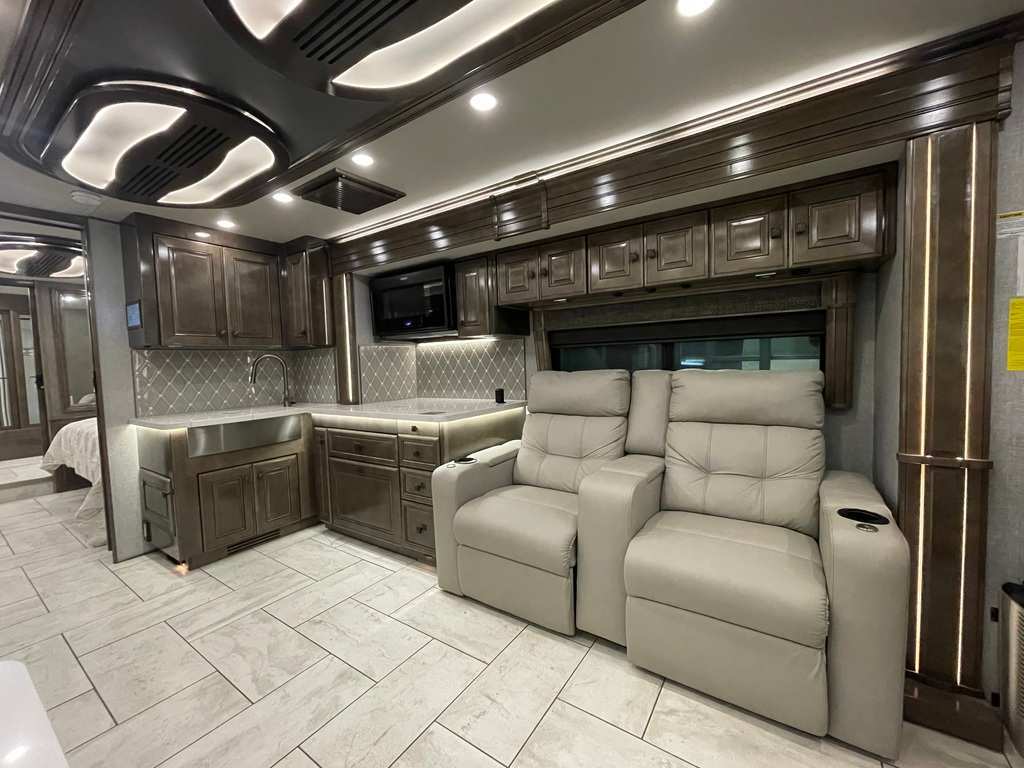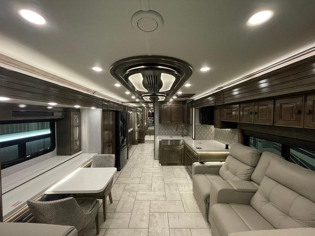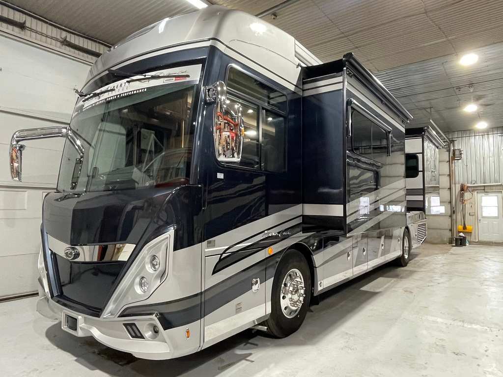 American Coach Tradition 37S 2023 Motorisé Classe A American Coach Tradition 37S 2023 Moteur cummins 16 pusher diesel 450HP avec châssis Freightliner liberty, transmission Allison automatique six vitesses. Il mesure 37'75 po. American coach est connu pour sa luxure et sa qualité de fabrication supérieure. Possibilité d'accueillir 4 personnes pour le coucher puisqu'il possède une chambre des maîtres avec lit King ainsi qu'un canapé style théâtre. Dans la salle de bain vous trouverez une grande douche en céramique avec porte en verre, une toilette et une vanité avec 2 lavabos et portes miroir. Dans la cuisine il y a un réfrigérateur double porte résidentiel, une plaque à induction et un four à convection. Petite table rétractable avec 2 chaises, deux téléviseurs, air climatisé, fournaise, prises électriques et haut-parleurs intérieurs/extérieurs.Extérieur en fibre de verre de couleur Gettysburg, auvent rétractable électrique, réservoir d'eau fraîche et d'eaux usées de 280 gal. Au total, réservoir de propane, petit réfrigérateur et téléviseur extérieur. Grand coffre de rangement. Visite virtuelle: https://my.matterport.com/show/?m=HMS43U4ecKY Toute l'équipe de Centre du VR est fière de vous présenter son inventaire de véhicules récréatifs neufs à vendre au Québec. Vous y trouverez notamment les marques Cruiser, Flagstaff, E-Pro, Springdale, Sunset Trail, Kodiak, Chaparral, Coleman, Bushwalker, motorisés Axis,Hurricane et Four winds. Remorques N&N, Apogée et Armorteck sont aussi disponibles. En inventaire pour vous, la série de génératrices Ducar. Vous avez un coup de cur ? Envoyez-nous une demande d'information, renseignez-vous sur le financement, ou remplissez immédiatement une demande de prêt. N'oubliez pas également que rien ne vaut une visite du modèle qui vous intéresse pour vous aider à prendre une décision éclairée. Passez donc nous voir afin de jeter un coup d'oeil plus détaillé à nos caravanes et caravanes à sellettes neuves. *** À noter que les frais d'administration de 399$ sont inclus dans le prix de vente ***
