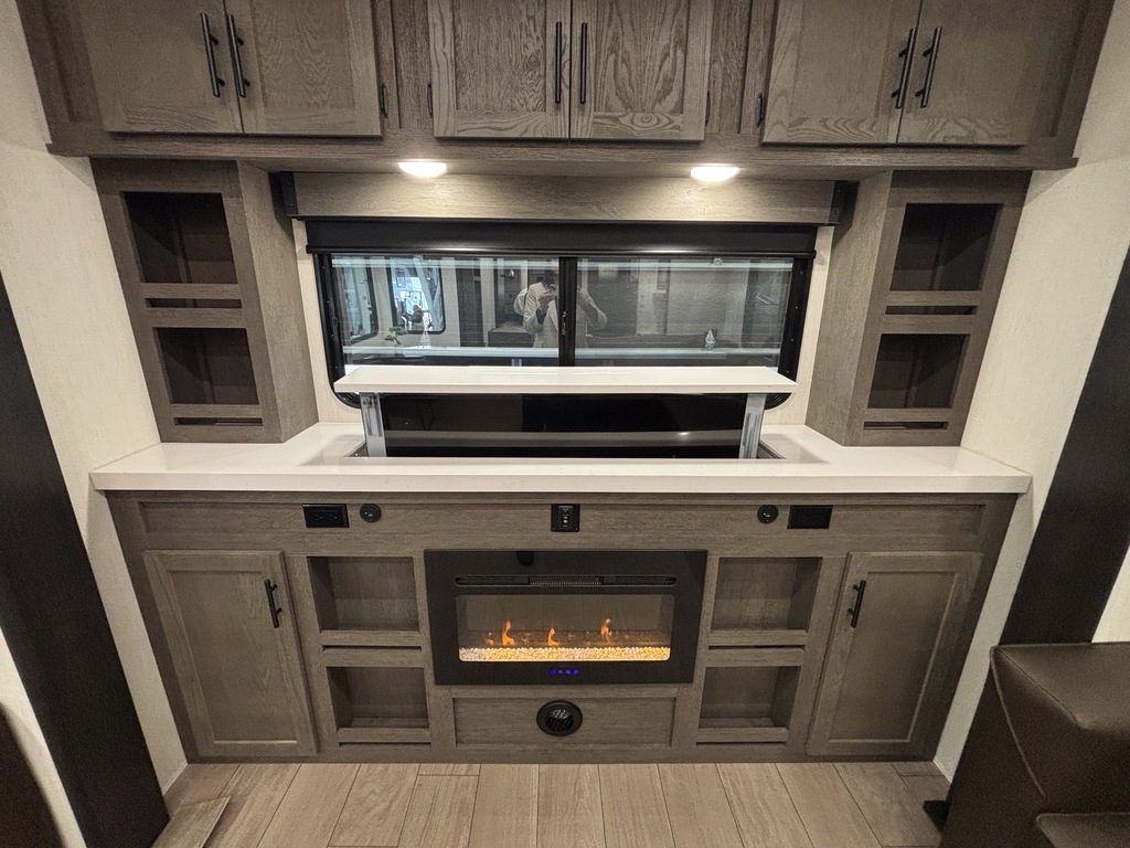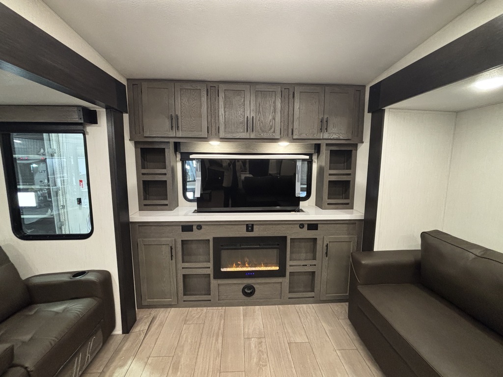 ARCTIC WOLF 289PANO 2026 ROULOTTE À SELLETTE POUR COUPLE AVEC UN POIDS DE 9300 LIVRES INTÉRIEUR; - Cuisine avec évier double, cuisinière avec dessus vitré, micro-ondes et grand réfrigérateur - Îlot central - Table avec rangement intégré, 2 chaises et un banc qui peut servir de rangement - 2 fauteuils inclinables - Grande fenestration qui entour l'arrière de la roulotte - Foyer électrique - Téléviseur rétractable dans le meubles du foyer - Sofa sectionnel qui se transforme en lit - Lumières avec gradateur dans l'ensemble de la roulotte - Système d'aspiration Roadvac pour faciliter le nettoyage - Chambre arrière avec grand lit et beaucoup de rangement - Salle de bain centrale avec douche en verre et belle vanité - Chauffage/climatisation EXTÉRIEUR: - Marches ultra robustes - Auvent extérieur électrique avec lumières - Coffre de rangement - Système auto-nivelant photos à titre indicatif