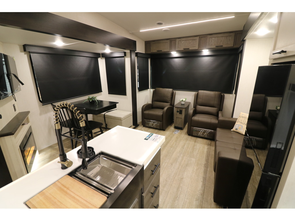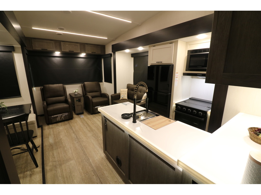 VENDU !!! Arctic Wolf 27 SGS 2025. NOUVEAU MODÈLE Roulotte à sellette parfaite pour un couple! Elle pèse 7600lbs. La cuisine est entièrement équipée. Elle est munie d'un îlot central, d'un grand réfrigérateur, d'un four, d'un micro-ondes, d'un grand évier en acier inoxydable, ainsi que plusieurs armoires de rangement. À l'arrière vous retrouverez le salon équipé de deux fauteuils , d'un sofa-lit ainsi que d'un beau foyer électrique. Juste à côté du foyer se trouve la table avec deux chaises et en face une petite banquette qui peut recevoir deux personnes assises. À l'avant de l'unité, se trouve la chambre des maîtres. Elle est équipée d'un matelas queen et de rangement de chaque côté du lit ainsi que d'un garde-robe en face du lit. Dans la salle de bain, vous avez une belle douche vitrée avec pommeau de douche de qualité supérieure et une belle vanité avec rangement. Une belle nouveauté pour ce modèle 2025 un coup de pied aspirateur pour ramasser les saletés est inclus dans la roulotte . Cette roulotte est équipée d'un système de nivellement automatique, de marches solides et d'un très grand espace de rangement. Financement disponible sur place *Photos à titre indicatif*