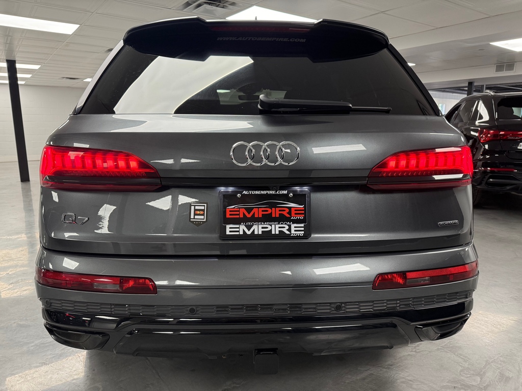 Options : Alarme, Climatisation, Freinage antiblocage (ABS), Coussins gonflables doubles, Phares anti-brouillard, Mirroirs électriques, Servo-direction, Vitres électriques, Dégivreur arrière, Volant ajustable, Régulateur de vitesse, Miroirs chauffants, Intérieur cuir, Aileron, Contrôle de traction, Essuie-glace détecteur de pluie, Rétroviseur anti-éblouissement, Volant télescopique, Contrôle de stabilité, Volant gainé de cuir, Compte-toursBLACK OPTICS PACKAGE The 2022 Audi Q7 Technik TFSI 55 combines refined performance and high-end features with its 3.0L turbocharged V6 engine producing 335 horsepower and paired to Audi's legendary quattro all-wheel-drive system. This 7-passenger luxury SUV offers confidence, control, and comfort in all conditions.Inside, premium leather seating, a panoramic sunroof, and advanced navigation come standard. The intuitive dual touchscreen MMI infotainment system includes Apple CarPlay and Android Auto, while a 3D premium sound system elevates every drive. With three rows of seating and refined interior finishes, the Q7 Technik blends everyday usability with upscale elegance.L'Audi Q7 Technik TFSI 55 2022 offre performance raffinee et equipement haut de gamme avec son moteur V6 turbo de 3,0 L developpant 335 chevaux et son systeme de traction integrale quattro. Ce VUS de luxe a 7 places est concu pour la confiance, le confort et le controle en toutes circonstances.L'habitacle comprend des sieges en cuir, un toit panoramique et la navigation de serie. Le systeme MMI a double ecran tactile integre Apple CarPlay et Android Auto, tandis que le systeme audio 3D offre une experience sonore immersive. Avec ses trois rangees de sieges et ses finitions soignees, le Q7 Technik allie elegance et fonctionnalite. Bienvenue chez Empire Auto, notre mission, vous faire gagner du temps au quotidien, obtenir des contacts introuvables, trouver une solution a un besoin urgent, mais surtout vous garantir le meilleur service accessible et personnalise. Venez rencontrer notre equipe passionnee. Laissez-nous vous offrir un service cle en main. Que ce soit pour notre Division Performance ou notre Division Camion & Commercial, une equipe specialisee vous accompagnera dans tous vos projets, et ce avec toutes les options de financement possible. Nous sommes soucieux de vous offrir le meilleur, cest pourquoi nous selectionnons soigneusement tous nos partenaires et nous revisitions regulierement letendue de leurs services, et ce pour vous faire decouvrir de nouvelles possibilites. De plus, votre temps est precieux, et nous vous delivrerons de contraintes pour vous laisser le meilleur. Nhesitez pas a communiquer avec nous, par telephone ou meme par visioconference nous serons a votre disposition pour repondre a tous vos questions et besoins, quelle que soit la nature de ceux-ci. TRANSACTIONS PERSONNALISEES ET ADAPTEES A VOS BESOINS PARTOUT AU CANADA & USA. FINANCEMENT & CREDIT BAIL DISPONIBLE L'ADMISSIBILITE ET LES CONDITIONS VARIENT SELON LE VEHICULE ET LE DOSSIER DE CREDIT CERTAINES MODALITES PEUVENT S'APPLIQUER 200 VEHICULES EN STOCK, OUVERT 6 JOURS/ 5 SOIRS VOICI NOTRE ADRESSE : 120, RUE DUBOIS SAINT-EUSTACHE, QC J7P 2W9