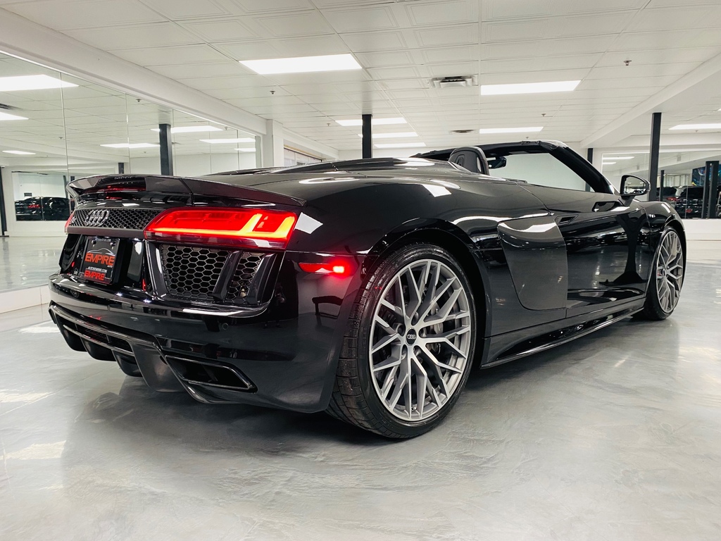 Options : Alarme, Climatisation, Freinage antiblocage (ABS), Coussins gonflables doubles, Phares anti-brouillard, Système de navigation, Mirroirs électriques, Servo-direction, Vitres électriques, Dégivreur arrière, Volant ajustable, Intérieur cuir, Aileron, Contrôle de traction, Régulateur de vitesse, Miroirs chauffants, Essuie-glace détecteur de pluie, Rétroviseur anti-éblouissement, Volant télescopique, Contrôle de stabilité, Compte-tours2018 AUDI R8 SPYDER AWD QUATTRO V10 PLUS | BLACK ON BLACK | AWD | 602HP | DUAL CLUTCH | EXCLUSIVE MODEL | PARKING SENSORS | CARBON CERAMIC BRAKES | NAVIGATION | CARBON FIBER EXTERIOR TRIM PACKAGE | SPORTS EXHAUST | NAVIGATION | BACKUP CAMERA | HEATED SEATS |& BANGOLUFSEN SOUND SYSTEM | SPORTS STEERING WHEEL | AUDI VIRTUAL COCKPIT | BLUETOOTH CONNECTIVITY | CLEAN CARFAX | CANADIAN VEHICLENous deservons partout au CANADA, Colombie Britanique,Vancouver, Victoria, Surrey, Kelowna, Alberta, Calgary, Edmonton, Saskatchewan, Saskatoon, Regina, Manitoba, Winnipeg, Ontario, Toronto, Ottawa, Hamilton, London, Cornwall, Quebec, Montreal, Laval, Quebec, New Brunswick,Bathurst, Moncton, Fredericton, Nouvelle Ecosse, Halifax, Terre Neuve, Saint-John's, Labrador City Bienvenue chez Empire Auto, notre mission, vous faire gagner du temps au quotidien, obtenir des contacts introuvables, trouver une solution a un besoin urgent, mais surtout vous garantir le meilleur service accessible et personnalise. Venez rencontrer notre equipe passionnee. Laissez-nous vous offrir un service cle en main. Que ce soit pour notre Division Performance ou notre Division Camion & Commercial, une equipe specialisee vous accompagnera dans tous vos projets, et ce avec toutes les options de financement possible. Nous sommes soucieux de vous offrir le meilleur, cest pourquoi nous selectionnons soigneusement tous nos partenaires et nous revisitions regulierement letendue de leurs services, et ce pour vous faire decouvrir de nouvelles possibilites. De plus, votre temps est precieux, et nous vous delivrerons de contraintes pour vous laisser le meilleur. Nhesitez pas a communiquer avec nous, par telephone ou meme par visioconference nous serons a votre disposition pour repondre a tous vos questions et besoins, quelle que soit la nature de ceux-ci. TRANSACTIONS PERSONNALISEES ET ADAPTEES A VOS BESOINS PARTOUT AU CANADA & USA. FINANCEMENT & CREDIT BAIL DISPONIBLE 200 VEHICULES EN STOCK, OUVERT 6 JOURS/ 5 SOIRS VOICI NOTRE ADRESSE : 120, RUE DUBOIS SAINT-EUSTACHE, QC J7P 2W9