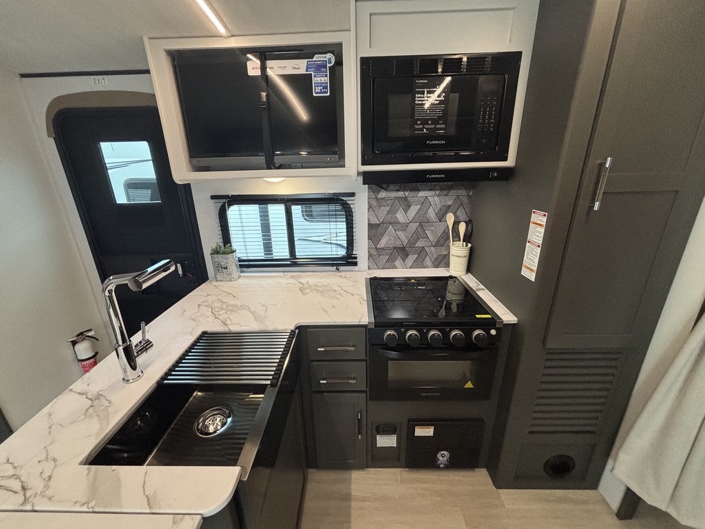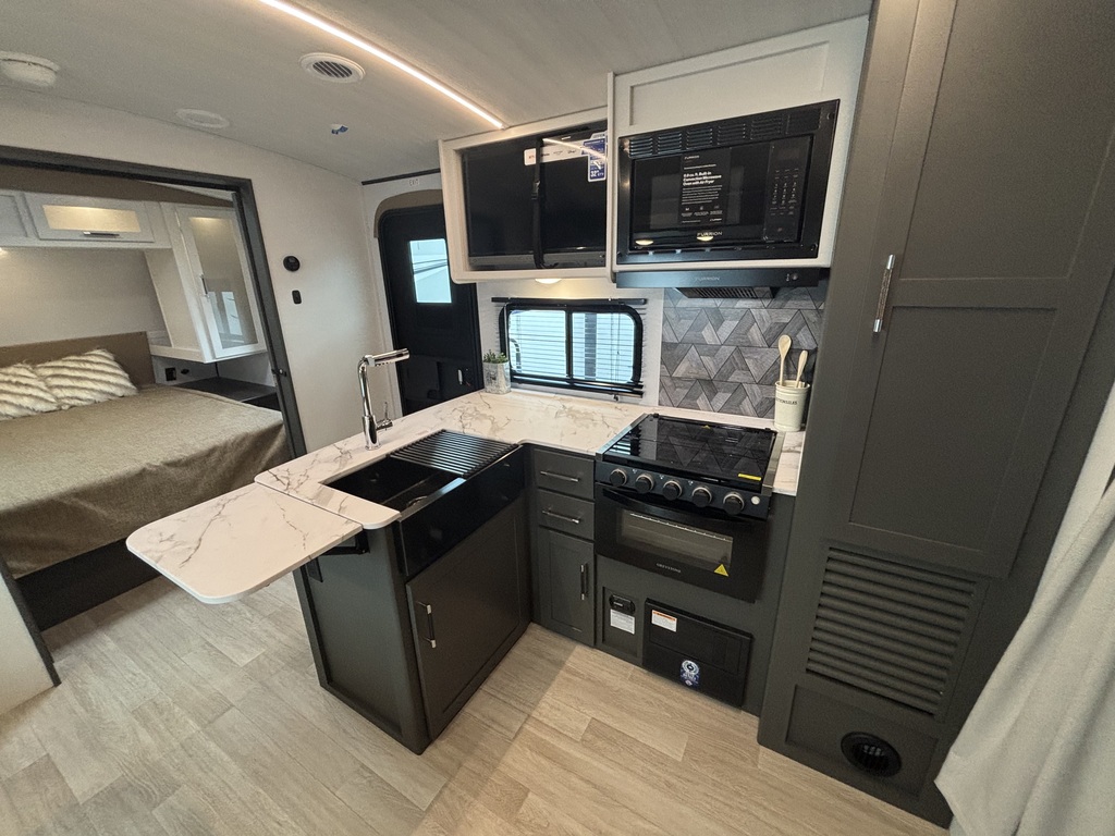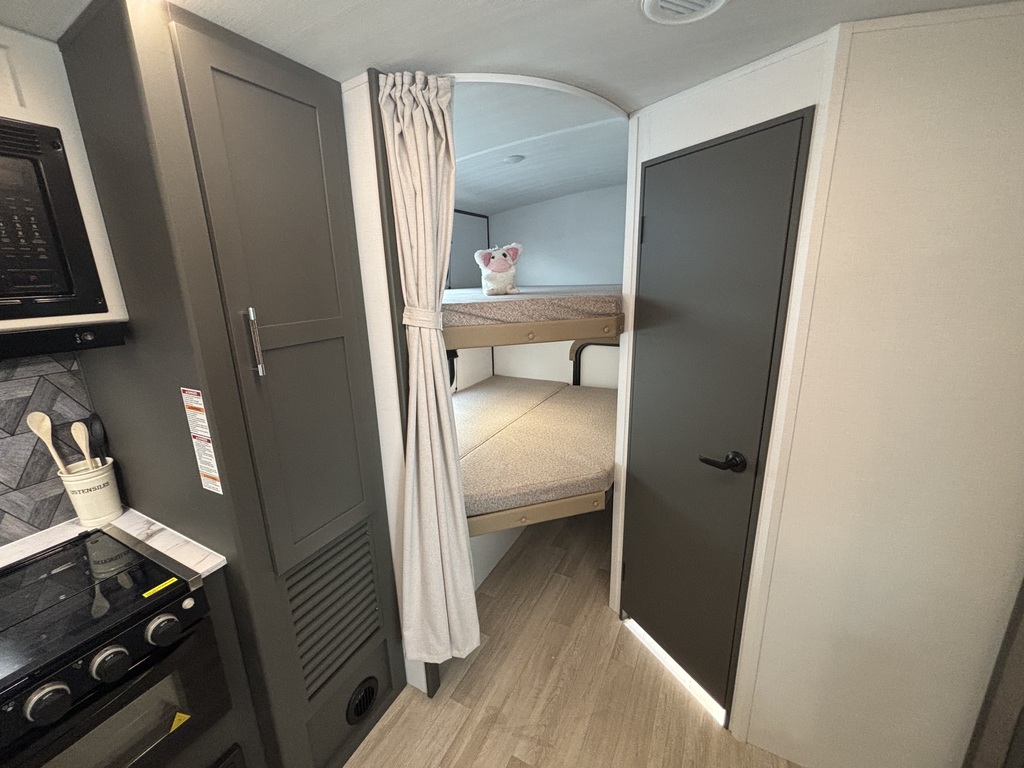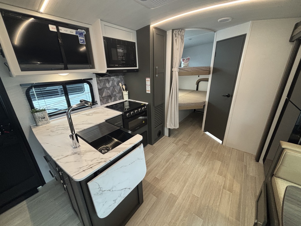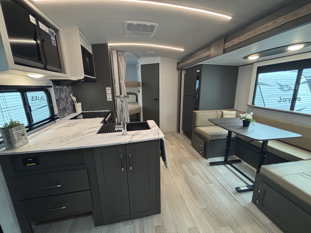 BULLET 2290BH 2026 ROULOTTE FAMILIALE AVEC UN POIDS DE 5500 LIVRES INTÉRIEUR: - Cuisine avec grand évier, cuisinière avec dessus vitré, micro-ondes convection air fryer et grand réfrigérateur - Extension de comptoir pour plus de place à cuisiner - Grande banquette en U qui se transforme en lit - Téléviseur 32'' inclus - Chambre avant avec grand lit et portes qui se referment pour plus d'intimité. De plus vous retrouverez du rangement tout autour - Lits superposés doubles arrière avec rangement dessous - Salle de bain arrière avec douche et belle vanité EXTÉRIEUR: - Marches ultra robustes - Cuisinière extérieur - Coffres de rangement - Auvent électrique - Porte arrière cargo - Stabilisateurs électriques - Jack électrique photos à titre indicatif