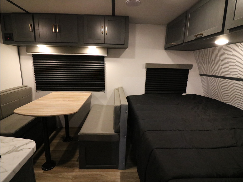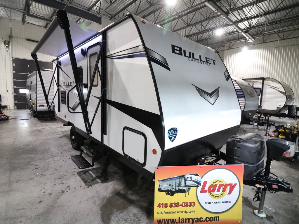 Bullet 1700BH 2022. Roulotte parfaite pour la famille de structure en aluminium avec revêtement en fibre de verre. Elle est facile à remorquer puisqu'elle a un poids de seulement 3800 lbs. C'est une superbe roulotte avec des lits superposés pour les enfants. Il y a une belle banquette en cuir avec une grande fenêtre devant qui se transforme en lit supplémentaire pour les invités. Aussi, l'espace cuisine est très fonctionnelle avec un évier double profond, un micro-onde, des ronds de poêle avec dessus vitré et un grand réfrigérateur avec congélateur à part. Cette roulotte dispose d'énormément de rangement. Elle a une belle salle de bain avec bain douche. Cette roulotte est parfaite pour passer du bon temps à l'extérieur grâce à l'auvent électrique ainsi qu'une petite douchette extérieure. Financement facile sur place. ***Photos à titre indicatif**