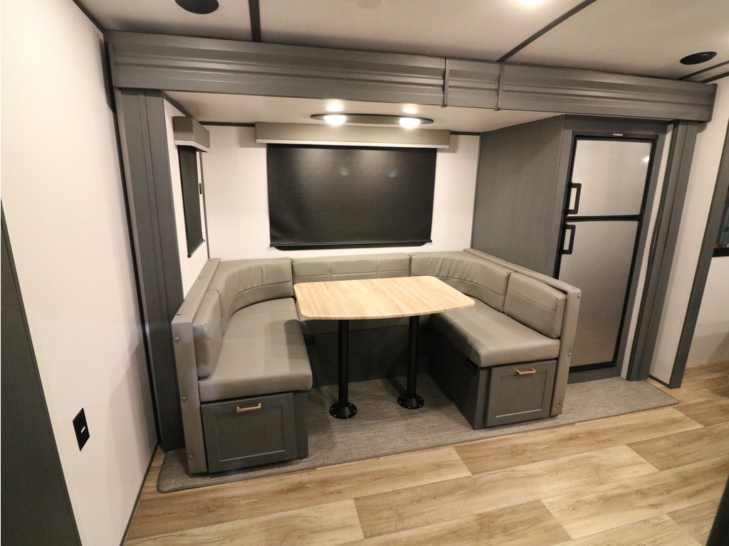 JE SUIS EN ROUTE !!! RÉSERVEZ-MOI !!! Bullet 23RBPR 2023. Roulotte très luxueuse parfaite pour un couple. Très belle finition extérieure en fibre de verre de couleur grise avec un cap moulé. Une cuisinette extérieure ainsi que l'auvent électrique et des haut-parleurs extérieurs seront très pratiques pour profiter des journées ensoleillées. À l'intérieur, vous pourrez profiter de la banquette en "U" en cuir qui se trouve dans l'extension. Elle dispose de grands tiroirs pour un maximum de rangement et elle peut se transformer en lit pour les invités. Dans la cuisine vous avez un grand réfrigérateur, une cuisinière et four avec dessus vitré ainsi qu'un évier en acier inoxydable très profond. Sans oublier le grand garde-manger qui est très pratique. La grande salle de bain a une grande douche et plusieurs armoires pour encore plus de rangement. La chambre avant est munie d'une vraie porte pour une plus grande intimité. Aussi, il y a une chute à linge, un petit accessoire très pratique. Pour faciliter la vie, le vérin avant ainsi que les quatre stabilisateurs! De plus, il y a beaucoup de rangement extérieur. Financement facile sur place. ***photos à titre indicatif***