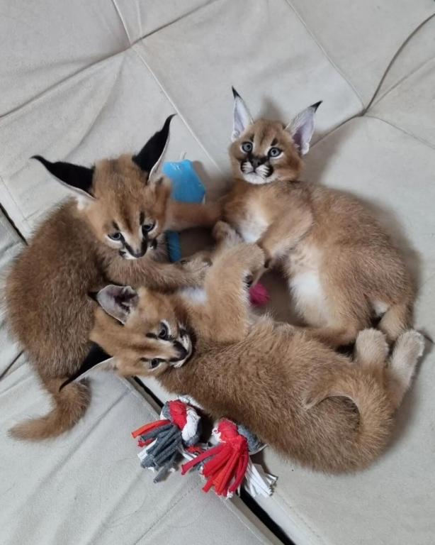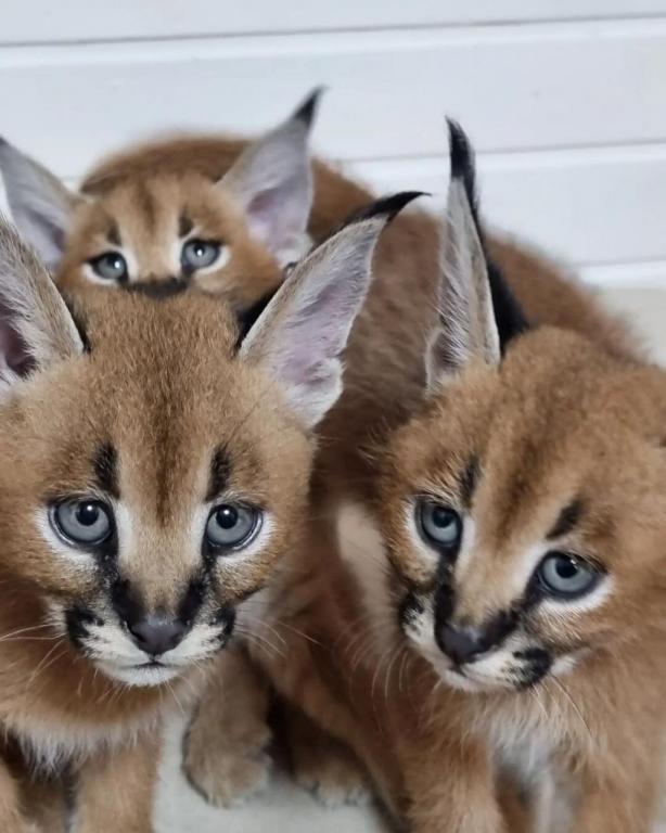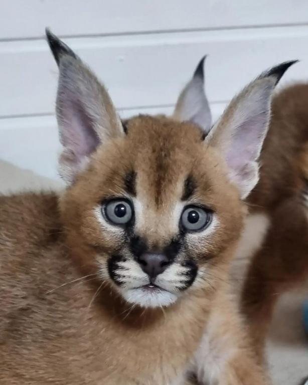 Bonjour et bienvenue. Nous avons à vendre Servals et caracals jeunes nés – Leptailurus serval (serval africain / savannah serval). Chatons prêts à être récupérés avec un ensemble de vaccins et de documents - nés dans notre chatterie légale et enregistrée. Les servals dès leur plus jeune âge sont socialisés (au biberon), apprennent à utiliser le bac à litière. Ils sont habitués à vivre dans une maison avec d'autres animaux de compagnie. Les parents sont issus des meilleurs élevages d'Europe. Si vous êtes intéressé, merci de nous contacter par téléphone ou sur notre whatsapp (00447476837635). À propos de nous : Nous sommes un chenil légal avec de nombreuses années de tradition d'élevage. Nos chats adultes sont issus des meilleures chatteries européennes sélectionnées, ce qui garantit la meilleure qualité de jeunes chatons, exempts de défauts génétiques, ce que nous garantissons. Vous pouvez voir notre chenil Google Exotic Pet. Les servals après achat doivent être enregistrés à la mairie. Pour l'enregistrement, nous délivrons une documentation complète sur l'origine de l'animal lors de l'achat d'un serval. Pour avoir un serval à la maison comme animal de compagnie, vous n'avez pas besoin
