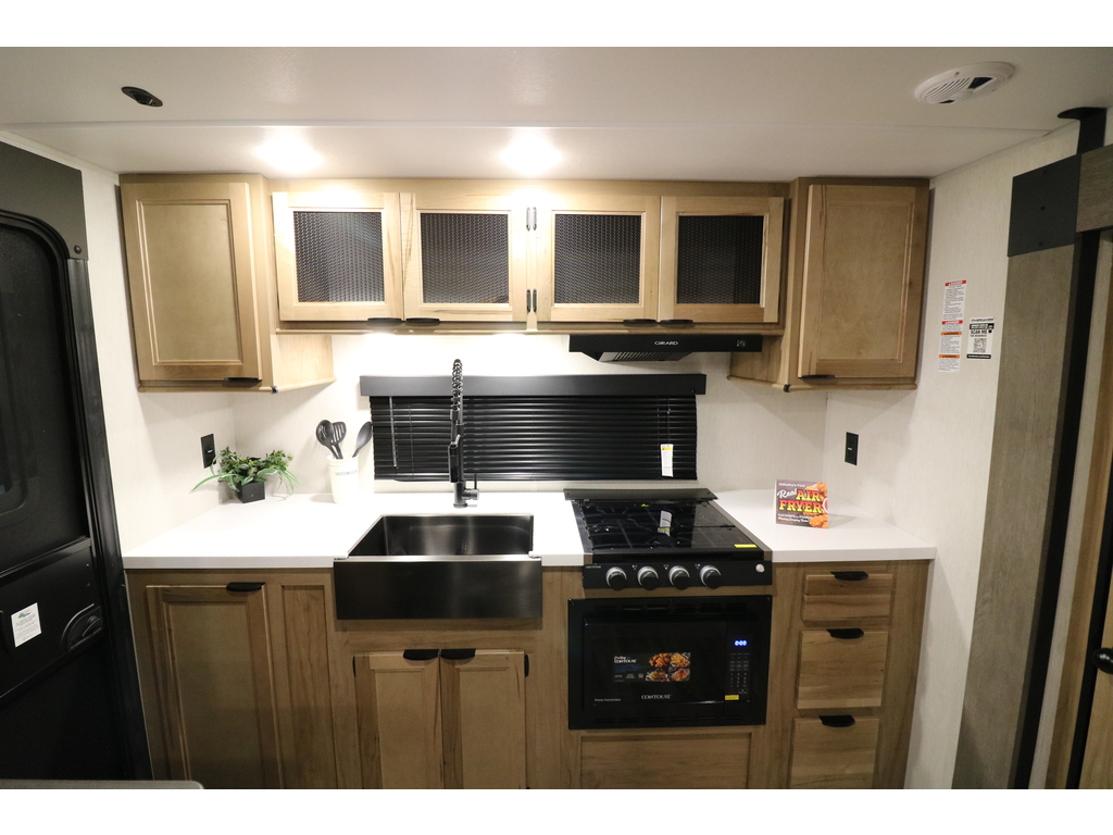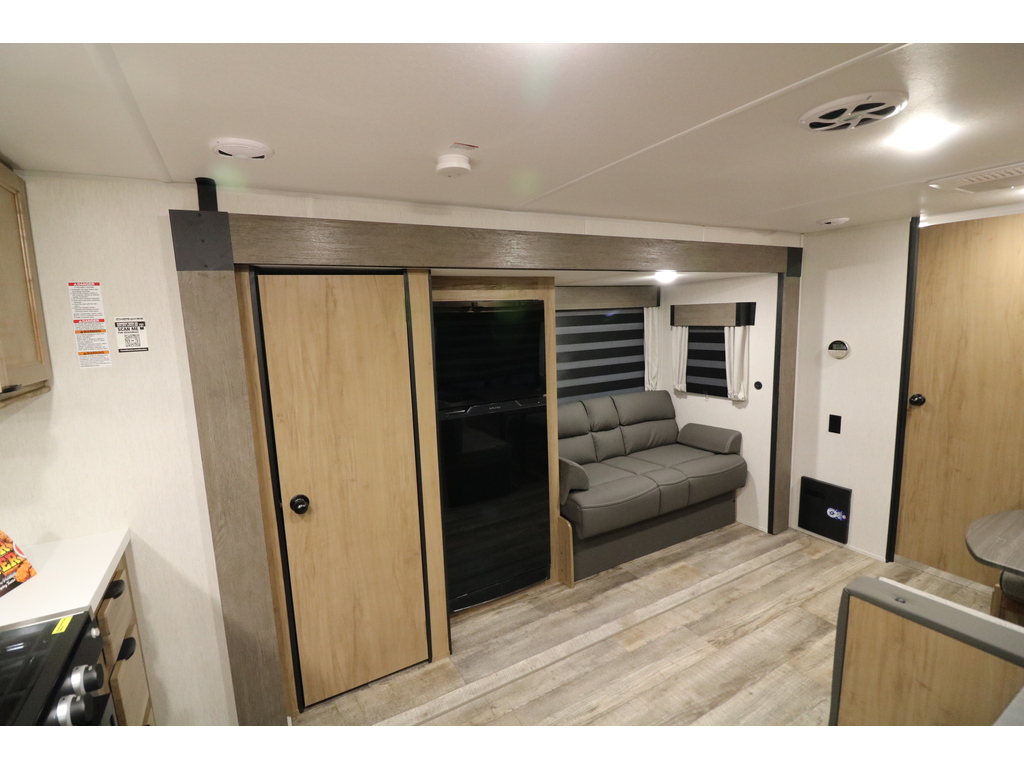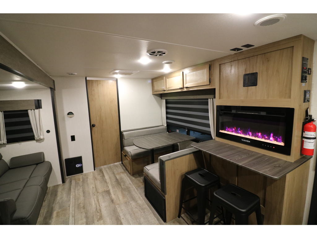 VENDU !!! Cherokee 233MBBL 2024 Poids 6200lbs Superbe roulotte pour couple en gel coat toute équipée il ne manque rien !!! Cuisine arrière avec contoire solide et salle de bain complète avec douche et beaucoup de rangement située au centre de la roulotte. Grande chambre avant fermée avec lit queen et plusieurs armoires. Elle a une extension avec un divan qui se transforme en lit. En face il y a une dinette et des tiroirs de chaque côté pour beaucoup de rangement. Foyer électrique La cuisine est munie d'un grand évier, une cuisinière et un four avec dessus vitré Grand réfrigérateur avec congélateur à part et grand garde-manger. Petite cuisinette extérieure pratique. Plusieurs équipements tel que : Climatiseur sur le toit, panneau solaire, caméra de recul, douchette extérieure, auvent électrique, chauffe eau à allumage électronique, marches robustes, radio bluetooth avec haut-parleurs intérieurs et extérieurs, vérins électrique avant. Financement facile sur place. LARRY AUTOS CARAVANES 530 ROUTE DU PRÉSIDENT-KENNEDY LÉVIS SORTIE 325 SUD 418-838-0333 PHOTOS À TITRE INDICATIF