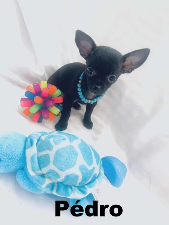 Chihuahua Mâle mini Toy poils court et poils long feront 3 lb adulte .Contrat de Garantie complet 1an . Assurance accident & santé gratuite.Papa pèse 2lb 1/2 ,Maman enrg CKC. Délicat et petits , aiment bien explorer partout dans la maison,. Adore se faire prendre et aime dormir dans nos bras . Très calme et affectueux. bien élevé , déjà habituer à se promener dans une petite sacoche. Petite boule d'affection qui saura vous charmer Superbe conformité (pattes courte nez court, tête de pomme). Adorable amour sur 4 pattes, aime bien jouer avec les autres chiots. Très autonome et ne sens laisse pas imposer par les plus grand. Adore les câlins . Propre sur pipi pad et journaux. Garantie 1ans sur contrat écrit, assurance santé gratuite, examen médicale rigoureux, Vacciné, vermifugé, micropucé, antiparasite. Vaccin de surplus bordatella compris. Nos chiots sont de qualité (aucune consanguinité). Éleveur certifié avec permis du MAPAQ. En tant qu’éleveur soucieux d’offrir des chiots de qualité, il est primordial pour nous d’avoir des parents qui répondent aux standards de la race afin de produire des chihuahuas en santé, sans défaut génétique et avec un bon tempérament. Nous choisissons le mariage parfait femelle et mâle pour l’accouplement afin de vous offrir des chiots exceptionnels et bien typé. Nous élevons avec amour et passion de magnifiques chihuahuas poils longs et courts. Il règne dans notre élevage un atmosphère d'amour et de paix. Les soins au nouveaux nés demande notre disponibilité 24h/24. Il nous faut faire preuve d'un grand dévouement et avoir à cœur la passion de cette petite race exceptionnelle. Nos chiots ne nous quittent pas avant d’avoir 3 mois car ils doivent avoir appris a bien socialisée, cette période est requise pour leurs équilibre et développement Nos chiots sont tous entrainés à la propreté sur pipi pad et journaux. Il nous quitte avec carnet de vaccination, une trousse de départ complète.Les Amis Chihuahua de Mimi 514-241-9196