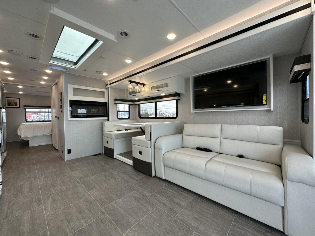Options : Génératrice à essence, Réservoir de propane, Climatiseur conduit central, Miroirs électriques, Régulateur de vitesse, Volant inclinable, Caméra Marche arrière, Cric hydraulique, Échelle, Attache-remorque, Toilette, Lit arrière, Canapé-lit, Prise électrique, Téléviseur, Antenne pour téléviseur, Micro-onde, Cuisinière, Four, Fourneau, Auvent, Couchette, Chauffe-eau à allumage directSuperbe motorisé classe A 2023 Coachmen Encore 355DS avec 2 très grand extensions, FULL BODY PAINT, pouvant accueillir jusqu'à 8 personnes pour dormir, roues 22.5, génératrice, panneau solaire et encore plus... We also speak english Voir www.superieurvr.com pour plus de photos Un véhicule récréatif demeure la meilleure manière de voyager en toute sécurité en protégeant votre santé et celle des personnes qui vous sont chères! Financement disponible et échange accepté Appelez nous sans frais au 1-888-756-0481 Supérieur VR cest 15 ans d'expérience à votre service. Des techniciens formés, accrédités et expérimentés. Cest 10 baies de service: mécanique, habitation, esthétique, atelier de carrosserie complet avec chambre à peinture grand format (50 pieds). Centre de service autorisé pour les génératrices Onan Cummins, systèmes de chauffage Aqua Hot, Hydro hot, precision temps et Oasis. Nous vendons des motorisés usagés certifiés. Nous avons aussi des motorisés neufs de marque Coachmen Sportscoach, Encore, Mirada et Pursuit. Nous sommes aussi détaillant du manufacturier Gulfstream pour les marques Conquest et BT CRUISER. Sans oublier le manufacturier Holiday Rambler pour les marques Admiral, Eclipse, Invicta et Vacationer. De plus, nous avons un vaste choix de pièces sur place.Garantie : Garantie motopropulseur Ford 5 ans ou 100 000 km Garantie base Coachmen 1 an Garantie supplémentaire disponible