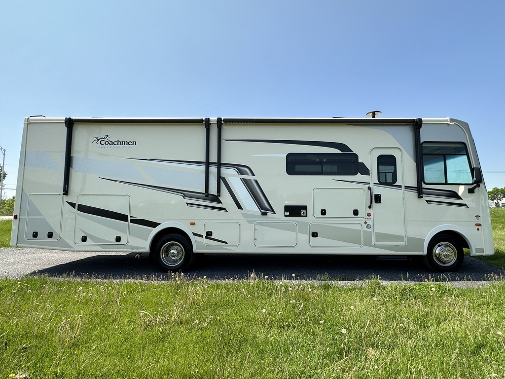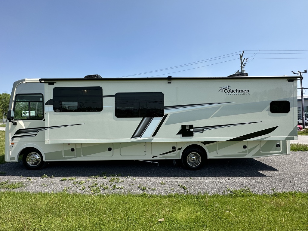 Options : Génératrice à essence, Réservoir de propane, Climatiseur conduit central, Miroirs électriques, Régulateur de vitesse, Volant inclinable, Caméra Marche arrière, Cric hydraulique, Échelle, Attache-remorque, Douche, Toilette, Lit arrière, Prise électrique, Téléviseur, Antenne pour téléviseur, Micro-onde, Cuisinière, Four, Fourneau, Auvent, Chauffe-eauSuperbe motorisé classe A 2023 Coachmen Mirada 32LS avec 1 extension, pouvant accueillir jusqu'à 5 personnes pour dormir, 2 auvents, cuisine extérieur, panneau solaire et encore plus... We also speak english Voir www.superieurvr.com pour plus de photos Un véhicule récréatif demeure la meilleure manière de voyager en toute sécurité en protégeant votre santé et celle des personnes qui vous sont chères! Financement disponible et échange accepté Appelez nous sans frais au 1-888-756-0481 Supérieur VR cest 15 ans d'expérience à votre service. Des techniciens formés, accrédités et expérimentés. Cest 10 baies de service: mécanique, habitation, esthétique, atelier de carrosserie complet avec chambre à peinture grand format (50 pieds). Centre de service autorisé pour les génératrices Onan Cummins, systèmes de chauffage Aqua Hot, Hydro hot, precision temps et Oasis. Nous vendons des motorisés usagés certifiés. Nous avons aussi des motorisés neufs de marque Coachmen Sportscoach, Encore, Mirada et Pursuit. Nous sommes aussi détaillant du manufacturier Gulfstream pour les marques Conquest et BT CRUISER. Sans oublier le manufacturier Holiday Rambler pour les marques Admiral, Eclipse, Invicta et Vacationer. De plus, nous avons un vaste choix de pièces sur place.Garantie : 1 an de base 5 ans ou 100 000km motopropulseur Ford Garantie supplémentaire disponible