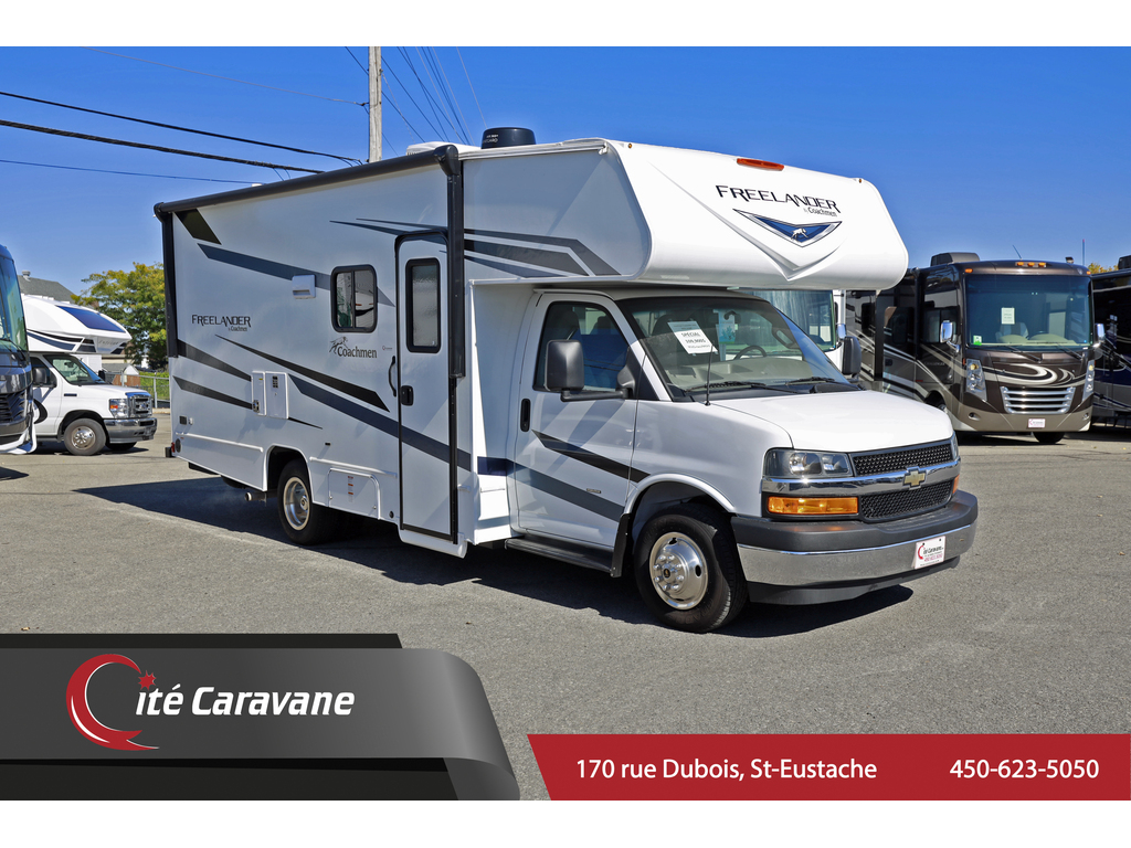 Classe C Coachmen Freelander 2023 22XG avec porte arrière CARGO !! TRES RARE SUR LE MARCHER !! WOW A VOIR !! Les options extérieurs sont les suivants, cap avant mouler en fibre de verre, génératrice 4000w, porte arrière accès au cargo gigantesque, hitch arrière 2’’ 5000lbs, camera de recul, 4 point d’ancrage à l’intérieur du VR, Lit queen, mécanique GM avec les 2 bancs pivotant, évier double, four avec 3 ronds, micro-onde, Unité d’air climatiser, système de chauffage central, très grand frigo et congélateur, belle grande douche et encore plus !! 952$/Mois+txs www.citecaravane.com 450-623-5050 170 RUE DUBOIS ST-EUSTACHE !!! Class C Coachmen Freelander 2023 22XG with rear Cargo door!! VERY RARE ON THE MARKET!! WOW TO SEE!! The exterior options are as follows, molded fiberglass front cap, 4000w generator, gigantic cargo access rear door, 2 '' 5000lbs rear hitch, backup camera, 4 anchor points inside the RV, Queen bed, GM mechanics with 2 swivel seats, double sink, oven with 3 burners, microwave, Air conditioning unit, central heating system, very large fridge and freezer, beautiful large shower and much more!! Available now. 952$/mois+txs www.citecaravane.com 450-623-5050 170 RUE DUBOIS ST-EUSTACHE !!!