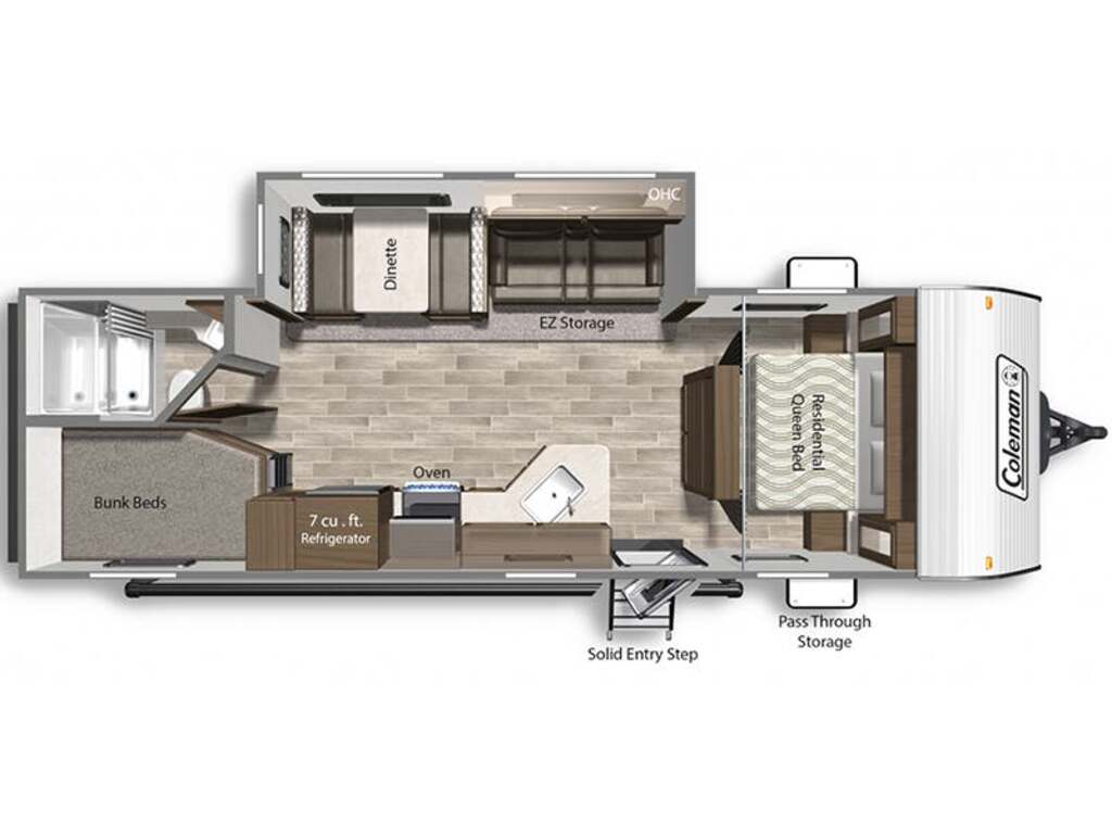 COLEMAN 262BH 2022 Coleman 262BH Elle mesure 30'58'' et pèse 5 486lbs Cet unité possède beaucoup de commodité et est idéal pour une famille puisqu'elle possède des lits superposés ainsi qu'une chambre fermée avec un lit Queen. Dans la cuisine, il y a une table avec banquette transformable en lit double, un canapé-lit en cuir, une cuisinière à 3 brûleurs avec fourneau, une hotte, un micro-onde ainsi qu'un réfrigérateur de 10 pi. cu. La salle de bain est munie d'une douche, une toilette et un meuble lavabo avec miroir. L'extérieur est en aluminium et elle dispose d'un auvent rétractable électrique de 16'. Vous trouverez un réservoir d'eau douce de 52 gal, un réservoir d'eaux usés de 84 gal ainsi que deux réservoirs de propane d'une capacité de 40 lbs. L'extension est située au centre ce qui permet plus d'espace habitable au niveau de la cuisine. Centre du VR : Votre expert en véhicules récréatifs au Québec Découvrez le plus vaste inventaire de VR neufs et d'occasion au meilleur prix. Que vous cherchiez une roulotte, une caravane à sellette (fifth wheel), une caravane-portée, un motorisé ou une remorque, notre équipe vous propose les plus grandes marques : Roulottes et Fifth Wheels : Rockwood, Flagstaff, Cougar, Springdale, Sunset Trail, Chaparral, Columbus, Impression, Kodiak, Coleman, E-Pro, Cruiser RV. Motorisés (Classe A, B, C) : Axis, Hurricane, Fleetwood, Four Winds, Coachmen Cross Trail, Prism, Echelon, Outlaw, Beyond, Nova. Remorques et Équipements : NN, Apogée, Armorteck et génératrices Ducar ou Cummins. Bien plus que de la vente : Un service complet Département de pièces et boutique : Un inventaire massif de pièces de remplacement et d'accessoires de camping pour améliorer votre confort. Service et réparation : Un centre de service spécialisé pour l'entretien et la réparation de vos unités, assuré par des techniciens experts. Financement : Profitez de nos solutions de financement avantageuses directement sur place. Un modèle vous intéresse ou vous avez besoin d'un entretien ? Contactez-nous pour une demande d'information ou passez nous voir en succursale pour une visite ! Note : Les photos et options peuvent différer de la réalité.