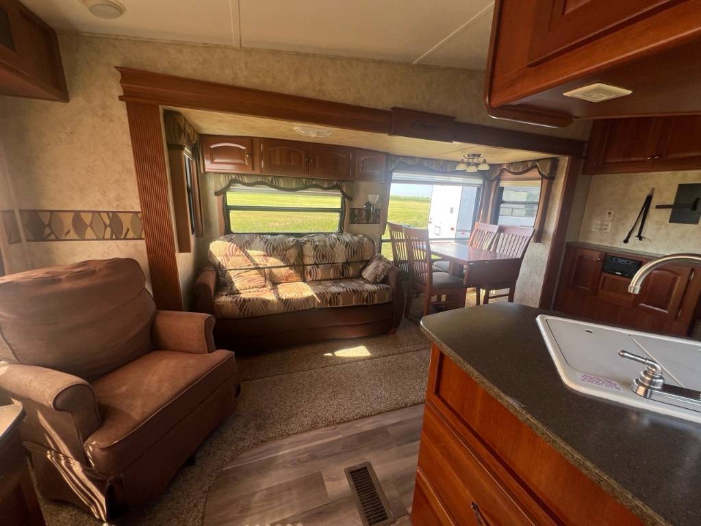 COUGAR 276 2010 Longueur 28,75 pi (345 po) Largeur 8 pi (96 po) Hauteur 11,67 pi (140 po) Poids Poids sec 7 212 livres Capacité de charge utile 2 968 livres Poids de l'attelage 1 380 livres Réservoirs de rétention Nombre de réservoirs d'eau douce 1 Capacité totale du réservoir d'eau douce 60,0 gal. Nombre de réservoirs de rétention d'eaux grises 1 Capacité totale du réservoir d'eaux grises 76,0 gal. Nombre de réservoirs de rétention des eaux noires 1 Capacité totale du réservoir d'eaux noires 38,0 gal. Réservoir(s) de propane Nombre de réservoirs de propane 2 Capacité totale du réservoir de propane 14,2 gal. Capacité totale du réservoir de propane 60 livres. Mode d'alimentation du réfrigérateur Électrique / Propane. Peux coucher 6 personnes . *** Prendre note que les photos et les options décrites peuvent différées *** Toute l'équipe de Centre du VR est fière de vous présenter le plus vaste inventaire de véhicules récréatifs neufs et d'occasions à vendre au Québec. Vous y trouverez notamment les marques Columbus, Rockwood, Kodiak, Coleman, Cruiser RV, Flagstaff, E-Pro, Springdale, Sunset Trail, Cougar, Chaparral, Bontrager Outdoors, motorisés Axis,Hurricane, Outlaw, Coachmen Cross Trail, Prism, Echelon,Fleetwood, Four winds, Beyon, Nova, Patriot et Embassy Dolphin. Remorques N&N, Apogée et Armorteck sont aussi disponibles. En inventaire pour vous, la série de génératrices Ducar. Vous avez un coup de coeur ? Envoyez-nous une demande d'information,financement sur place. N'oubliez pas également que rien ne vaut une visite du modèle qui vous intéresse pour vous aider à prendre une décision éclairée. Passez donc nous voir afin de jeter un coup d'oeil plus détaillé à nos caravanes et caravanes à sellettes neuves.