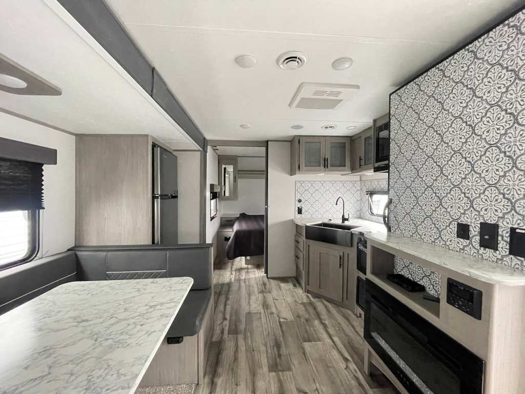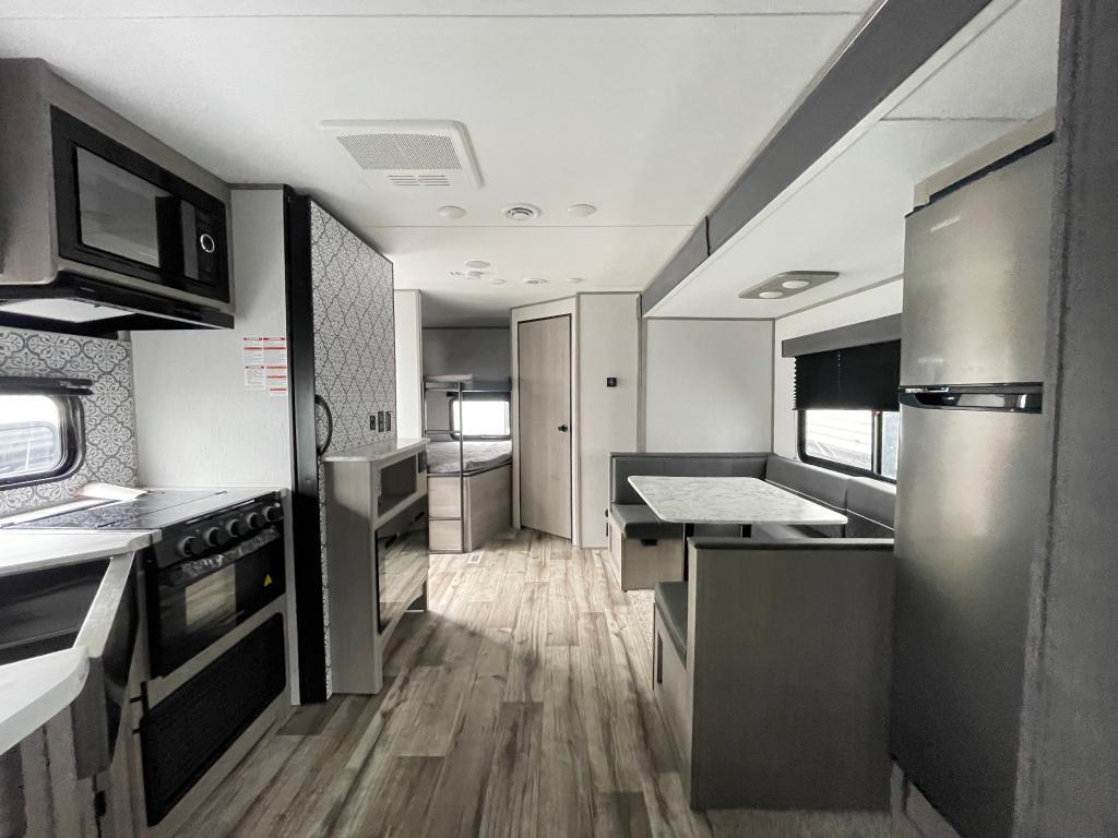 Dutchmen Coleman 242BH 2022 Roulotte familiale Coleman Lantern 242BH 2022Elle mesure 28'11' et pèse 5 865 lbsCette roulotte possède une extension au niveau de la banquette offrant beaucoup d'espace au niveau de l'aire commune. Elle peut accueillir jusqu'à 8 personnes au coucher puisqu'elle possède un lit superposé double, une banquette en U transformable ainsi qu'un lit Queen dans la chambre des maîtres. La cuisine possède une cuisinière 3 brûleurs avec hotte et fourneau, un micro-onde ainsi qu'un réfrigérateur de 10 pi. cu.. Air climatisé de 13 500 BTU, prises électriques et rangement.Le revêtement extérieur est en aluminium. Elle est munie d'un auvent rétractable électrique de 16', un espace de cuisson extérieur, un réservoir d'eau douce de 60 gal et d'eaux usées de 126 gal. De plus elle possède deux réservoirs de propane d'une capacité totale de 40 lbs. Coffre de rangement pleine largeur situé à l'avant, pneu de secours et haut-parleurs intérieurs/extérieurs. Toute l'équipe de Centre du VR est fière de vous présenter son inventaire de véhicules récréatifs neufs à vendre au Québec. Vous y trouverez notamment les marques Cruiser, Flagstaff, E-Pro, Springdale, Sunset Trail, Kodiak, Chaparral, Coleman, Bushwalker, motorisés Axis,Hurricane et Four winds. Remorques N&N, Apogée et Armorteck sont aussi disponibles. En inventaire pour vous, la série de génératrices Ducar. Vous avez un coup de cur ? Envoyez-nous une demande d'information, renseignez-vous sur le financement, ou remplissez immédiatement une demande de prêt. N'oubliez pas également que rien ne vaut une visite du modèle qui vous intéresse pour vous aider à prendre une décision éclairée. Passez donc nous voir afin de jeter un coup d'oeil plus détaillé à nos caravanes et caravanes à sellettes neuves. *** Des frais d'administration de 299$ sont applicables lors de la signature du contrat de vente ***