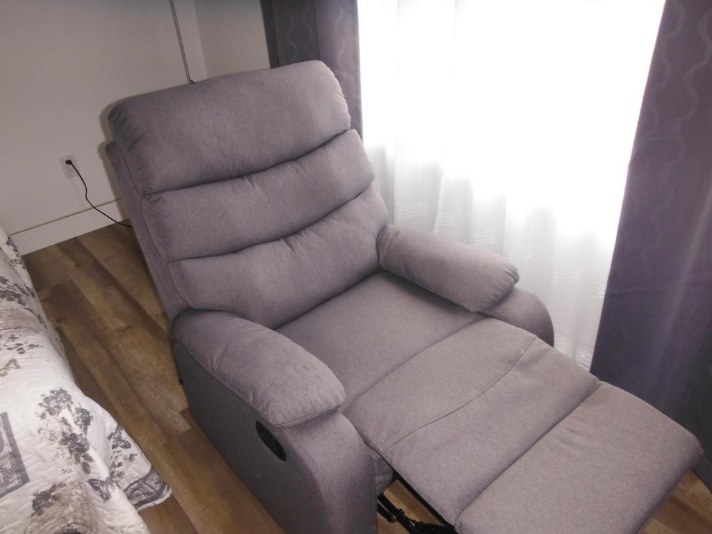fauteuil inclinable repose-pied intégré couleur gris moyen ,état neuf acheter au mois d octobre 2021 tres bonne qualité j ai payer 700.00 .je demande 350.00 .non fumeur et sans animaux