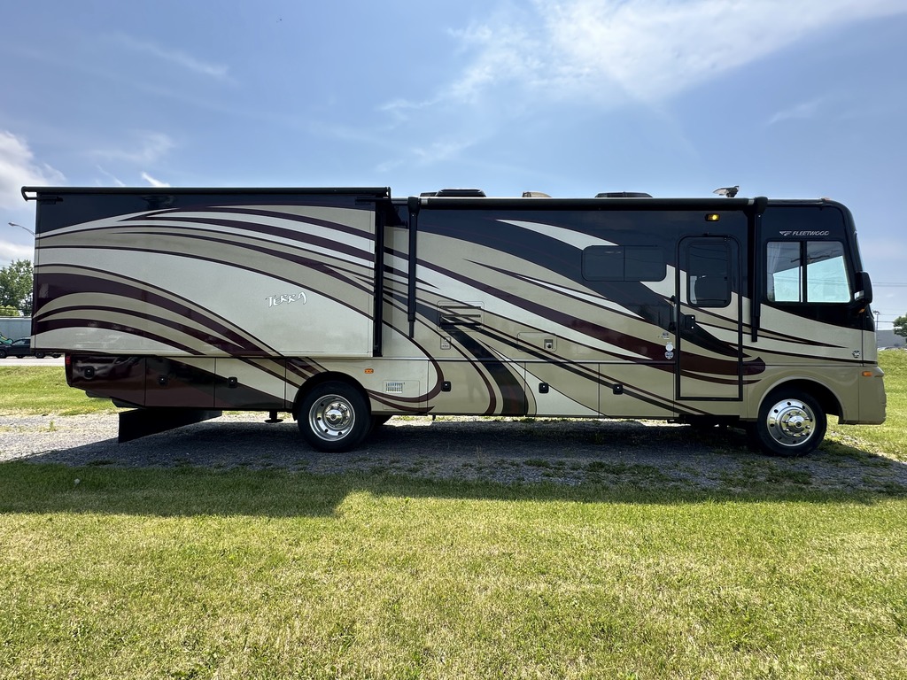 Options : Génératrice à essence, Réservoir de propane, Climatiseur conduit central, Miroirs électriques, Régulateur de vitesse, Volant inclinable, Cric hydraulique, Échelle, Attache-remorque, Douche, Toilette, Lit queen-size, Canapé-lit, Prise électrique, Téléviseur, Antenne pour téléviseur, Micro-onde, Cuisinière, Four, Fourneau, Auvent, Chauffe-eauConsignation / Payez une seule taxe !! Superbe motorisé classe A 2016 Fleetwood Terra 34B FULL PAINT avec 3 extensions, roues 22.5, génératrice ONAN 5500, micro-onde à convection et encore plus... We also speak english Voir www.superieurvr.com pour plus de photos Un véhicule récréatif demeure la meilleure manière de voyager en toute sécurité en protégeant votre santé et celle des personnes qui vous sont chères! Financement disponible et échange accepté Appelez nous sans frais au 1-888-756-0481 Supérieur VR c’est 15 ans d'expérience à votre service. Des techniciens formés, accrédités et expérimentés. C’est 10 baies de service: mécanique, habitation, esthétique, atelier de carrosserie complet avec chambre à peinture grand format (50 pieds). Centre de service autorisé pour les génératrices Onan Cummins, systèmes de chauffage Aqua Hot, Hydro hot, precision temps et Oasis. Nous vendons des motorisés usagés certifiés. Nous avons aussi des motorisés neufs de marque Coachmen Sportscoach, Encore, Mirada et Pursuit. Nous sommes aussi détaillant du manufacturier Gulfstream pour les marques Conquest et BT CRUISER. Sans oublier le manufacturier Holiday Rambler pour les marques Admiral, Eclipse, Invicta et Vacationer. De plus, nous avons un vaste choix de pièces sur place.Garantie : Motorisé en consignation...aucune garantie légale donné par le commerçant. Garantie supplémentaire disponible.
