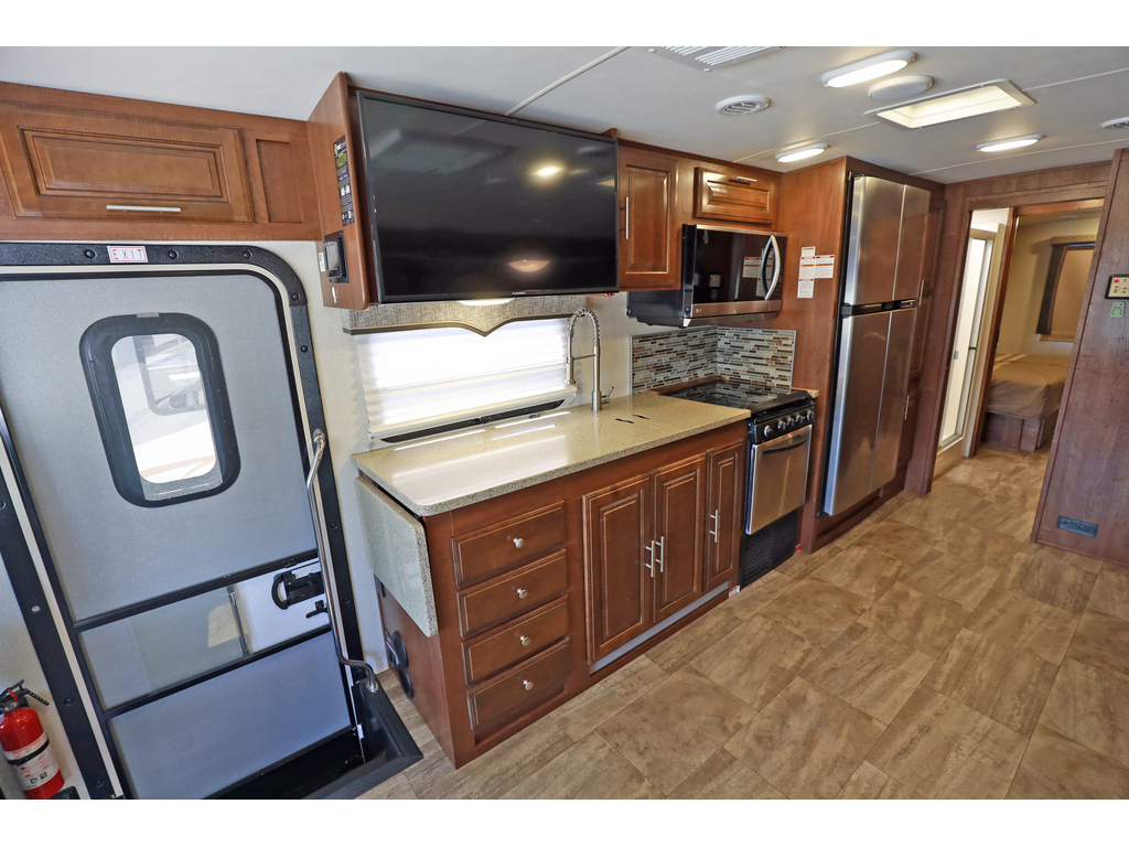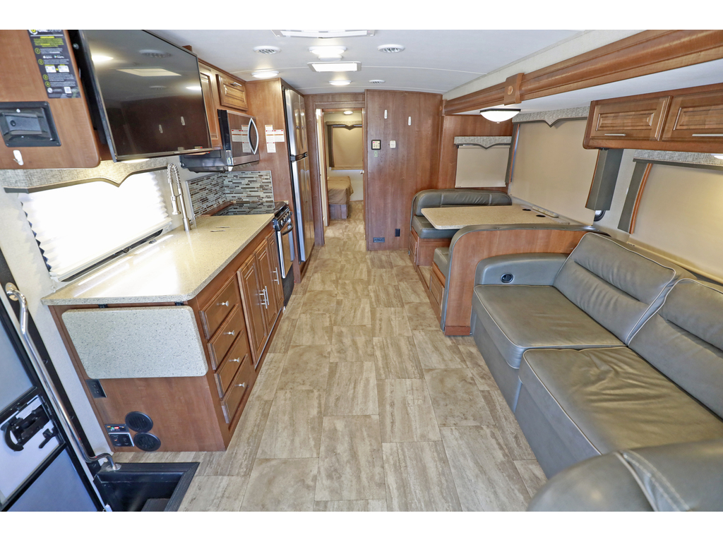 Forest River Georgetown GT5 31R5 Classe A. Son équipement complet débute par des caméras latérales et arrière, fenêtres thermos (artic pack 4 saisons), toit une pièce en fibre de verre, murs extérieurs avec finition Gel Coat et fabrication de type Vacuum Bonded, portes de coffres avec pentures latérales, black tank flush (système de nettoyage de la fosse deaux noires), éclairage dans les coffres extérieurs, , alimentation électrique 50 ampères, auvent principale électrique, auvents protecteurs au-dessus des extensions, stabilisateurs hydrauliques automatiques, génératrice 5500 WATTS, inverter 2000 WATTS INTÉRIEUR : Revêtement de plancher de qualité supérieure (Beauflor), chauffe-eau 6 gal, antenne automatique, fantastic fan, lit king pour la chambre principale, lit au-dessus des sièges conducteur et passager, lecteur AM/FM/DVD/Bluetooth & USB intégré, réfrigérateur 18 pi3 propane et électrique, chauffage de 35 000 BTU etc. Contactez-nous au (450) 623-5050 pour profiter du MEILLEUR CHOIX AU QUÉBEC, www.citecaravane.com Une compagnie à votre service depuis 1973 Forest River Georgetown GT5 31R5 Class A. Its complete equipment starts with side and rear cameras, dual pane windows (artic pack 4 seasons), one-piece fiberglass roof, exterior walls with Gel Coat finish and Vacuum Bonded type construction, gates chests with side hinges, black tank flush, lighting in the outer chests, 50 amp power supply, electric awning, awnings over extensions, automatic hydraulic stabilizers, generator 5500 WATTS, inverter 2000 WATTS INTERIOR: Superior quality flooring (Beauflor), 6 gal water heater, automatic antenna , fantastic fan, king bed for master bedroom, bed over driver and passenger seats, built-in AM / FM / DVD / Bluetooth & USB player, 18 cu. ft. propane and electric refrigerator, 35,000 BTU heating, etc. Contact us at (450) 623-5050 to take advantage of the biggest RV choice in québec www.citecaravane.com A company at your service since 1973