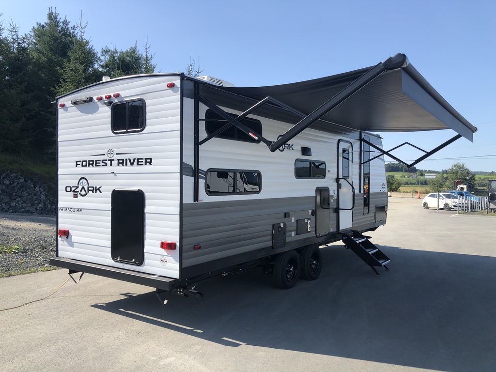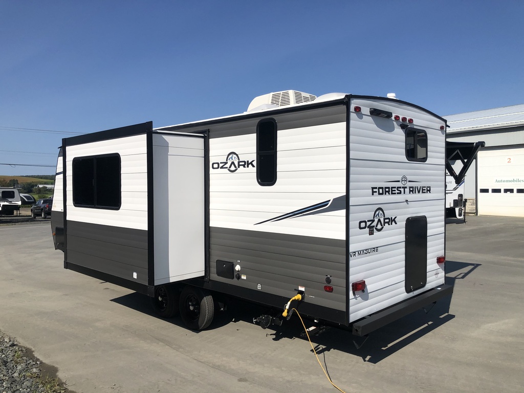 OZARK 2640 BHK 2025 PAR FOREST RIVER, POUVANT ACCUEILLIR JUSQU'À 8 PERSONNES POUR COUCHER, 1 SEUL SLIDE OUT, POIDS DE SEULEMENT 5873 LBS, LONGUEUR DE PLANCHER DE 26.40 PIEDS ET HORS TOUT DE 29.10'', GRAND LIT DE 80'' X 66'', BUNK BED DOUBLES DE 70'' X 48'' ET DE 68'' X 31'', GRANDE DINETTE LIT DE 80X48, GRANDE AUVENT ÉLECTRIQUE AVEC LED, PETIT FRIGO EXTÉRIEUR ET COFFRE DE RANGEMENT. ESPACES DE RANGEMENT RENDANT L'HABITACLE TRÈS FONCTIONNEL TOUT EN GARDANT LES COMMODITÉS SUIVANTES; GRAND FRIGO AVEC CONGÉLATEUR FONCTIONNANT AU 12 VOLTS, MICRO-ONDES, BRÛLEURS AU PROPANE À 3 RONDS, AIR CLIMATISÉ, CHAUFFE-EAU, CHAUFFAGE ET ENCORE PLUS! TRÈS BELLE ROULOTTE AVEC BEAUCOUP DE RANGEMENT! COUP DE COEUR ASSURÉ! VOUS CHERCHEZ UNE BELLE ROULOTTE CARGO DE QUALITÉ AU MEILLEUR PRIX ALORS, NOUS AVONS CE QU'IL VOUS FAUT. CELLE-CI EST LA PLUS BELLE DU MARCHÉ. ROULOTTE VENDU INSPECTÉE ET GARANTIE. PASSEZ NOUS VOIR AU 174 ROUTE DU PRÉSIDENT KENNEDY, BEAUCEVILLE, G5X 1P4, À SEULEMENT 40 MINUTES DES PONTS DE QUÉBEC. LIVRAISON DISPONIBLE PARTOUT AU QUÉBEC! PROFITEZ DE NOTRE FINANCEMENT FACILE ET RAPIDE. POUR PLUS D'INFOS, SANS FRAIS 1-888-799-0874, BUREAU 418-774-5066, CELL OU MESSAGE TEXTE KEVIN 418-386-0025 AU PLAISIR DE VOUS SERVIR ET À BIENTÔT! TOUJOURS LES MEILLEURS PRIX DU MARCHÉ WWW.AUTOMAGUIRE.COM *** NOUVEAUTÉS CHAQUE SEMAINE ***