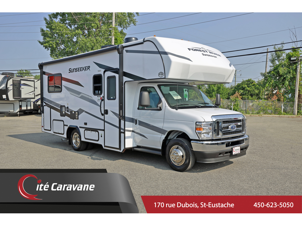 Forest River Sunseeker 2150 1 extension CLASSE C Tissu : Lava , boiseries :River teak , , Prise 30AMP , chauffe eau 6 gallons , chauffage 30,000BTU , A/C au toit 13.5BTU canalisé , murs de 2, fini gel-coat , toit en fibre de verre , auvent électrique , hitch de 5000lbs ,TV , frigidaire 10 pieds cube , tiroirs styles résidentiels , cuisinière a trois bruleur , stores de nuit , plafond de 7 pieds , génératrice de 4000watts Flexipower , batterie auxiliaires , micro-onde a convection , sièges avant en Tissue ,appareils noir , arctic Pack ( 4 saisons ) , couvert en fibre de verre , matelas Queen 60x80 , Prélart a grandeur Beauflor , antenne digitale, comptoirs de luxe, caméra de recule + panneau solaire 1249$/MOIS + taxes ! www.citecaravane.com 450-623-5050 170 RUE DUBOIS , ST-EUSTACHE, SUR LE BORD DE LA 640! UNE ENTREPRISE FAMILIALE A VOTRE SERVICE DEPUIS 1973 ! , DÉPOSITAIRE NUMÉRO 1 FOREST RIVER SUNSEEKER ! LE SPÉCIALISTE DU VR AU QUÉBEC ! Forest River Sunseeker 2150 1 slide CLASS C fabric : Lava , wood : River teak , 30AMP , 6 gallon water heater , 30,000BTU heater , 13.5BTU ducted roof A/C , 2inch thick walls , gel-coat exterior , fiberglass roof , electric awning , 5000lbs hitch , TV , 10 cubic feet fridge , residential style drawers , 3 range burner oven ,convection micro-wave , night shades , 7 feet high ceilings , 4000watts Flexipower generator, auxiliary battery, Cloth front seats ,black appliances , arctic pack ( 4 seasons ) , fiberglass front cap , Queen 60x80 matress , Beauflor linoleum throughout , Digital Antenna ,Upgraded countertops, back up camera + Solar Panel . 1249$/MONTH +taxes. www.citecaravane.com 450-623-5050 ! CALL US TODAY ! Cité Caravane, 170 rue Dubois in Saint-Eustache, adjacent to the 640 highway. A FAMILY OWNED BUISNESS SINCE 1973 ! QUÉBEC s RV SPECIALIST !