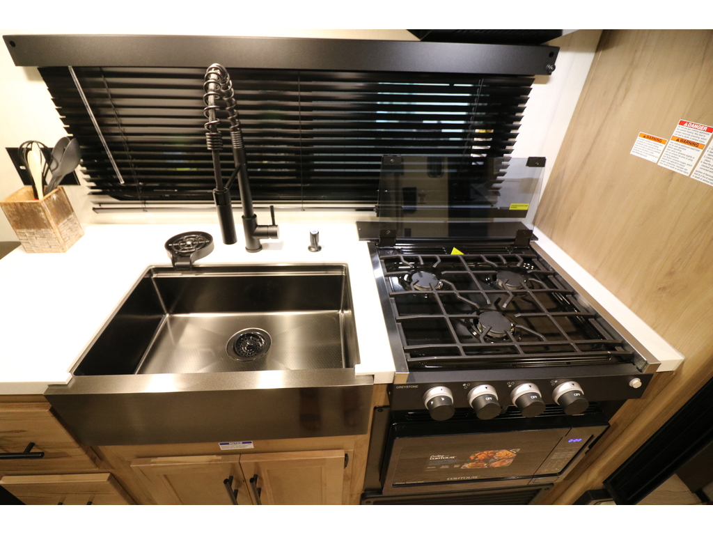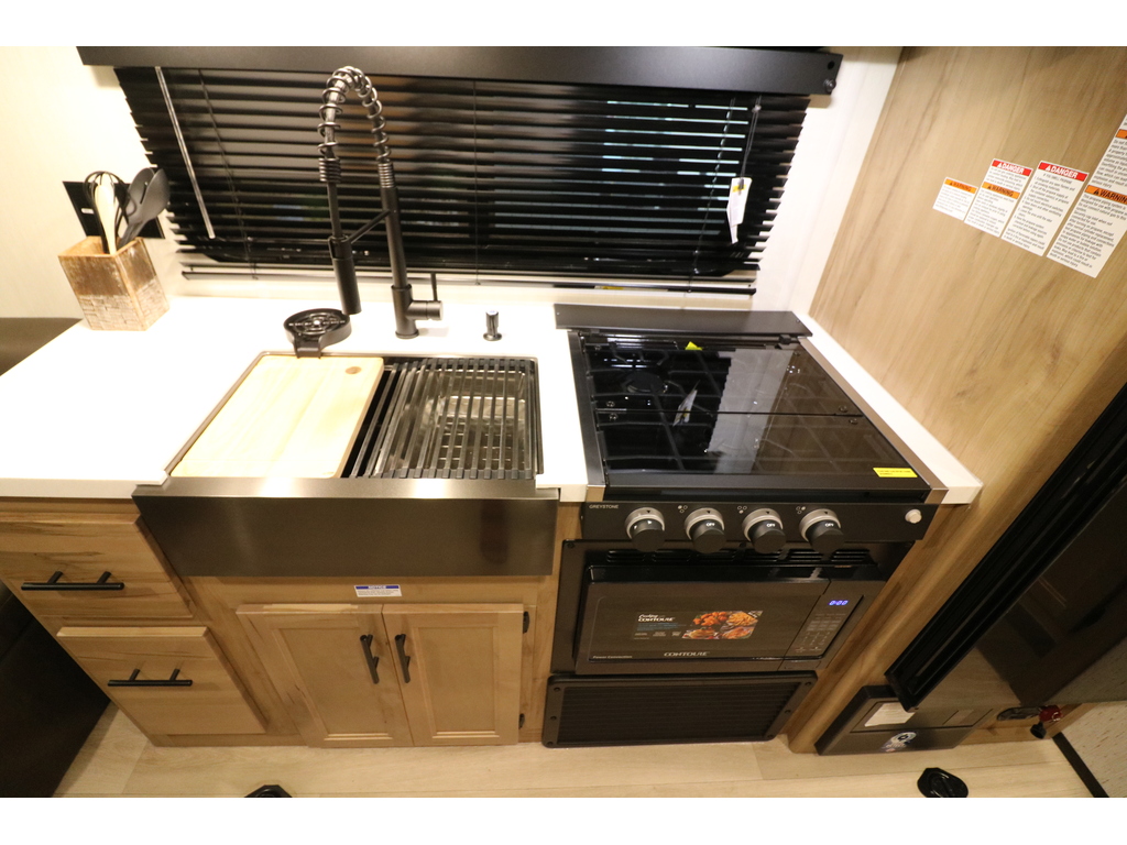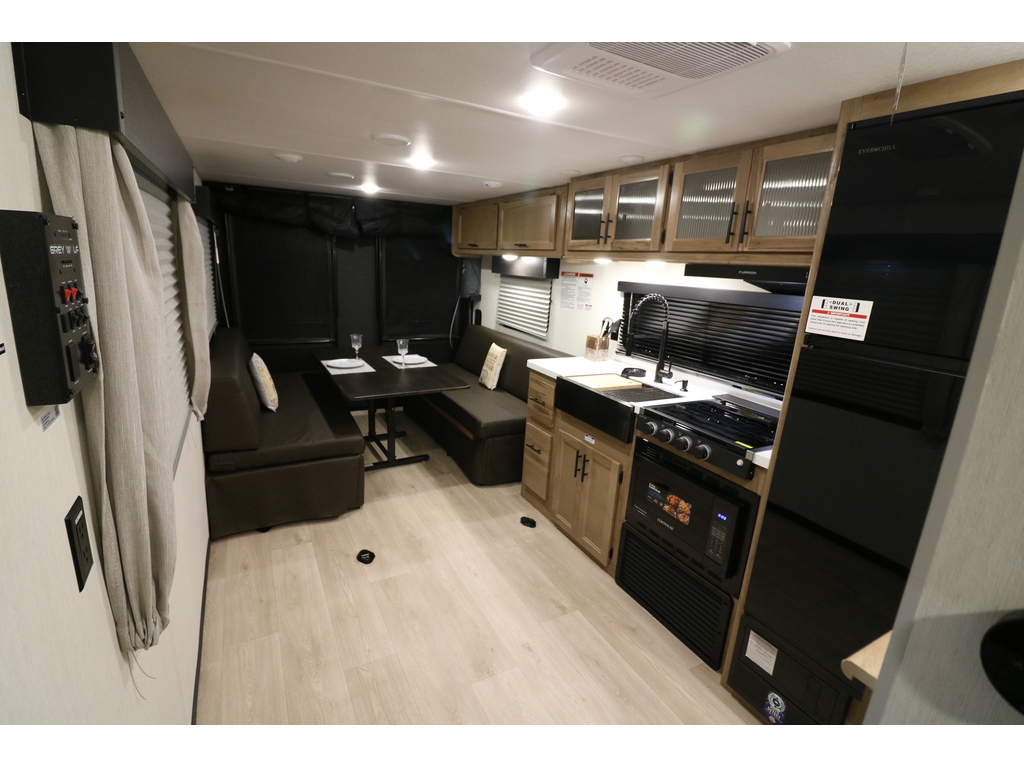 GREY WOLF 25RR BLACK LABEL 2025 Roulotte cargo avec un poids de 5300 livres INTÉRIEUR: - Cuisine avec comptoir robuste, évier double, cuisinière 3 ronds, micro-ondes convection et air fryer et grand réfrigérateur - Grande banquette en cuir qui se transforme en lit pour les invités - Chambre avant avec lit queen et rangement tout autour - Salle de bain avec belle vanité, beaucoup de rangement et douche en coin avec robinetterie de qualité supérieure EXTÉRIEUR: - Marches ultra robustes - Jack électrique - Finition gel coat - Fenêtres sans contour - Coffres de rangement - Auvent électrique - Rampe cargo qui se transforme en patio photos à titre indicatif