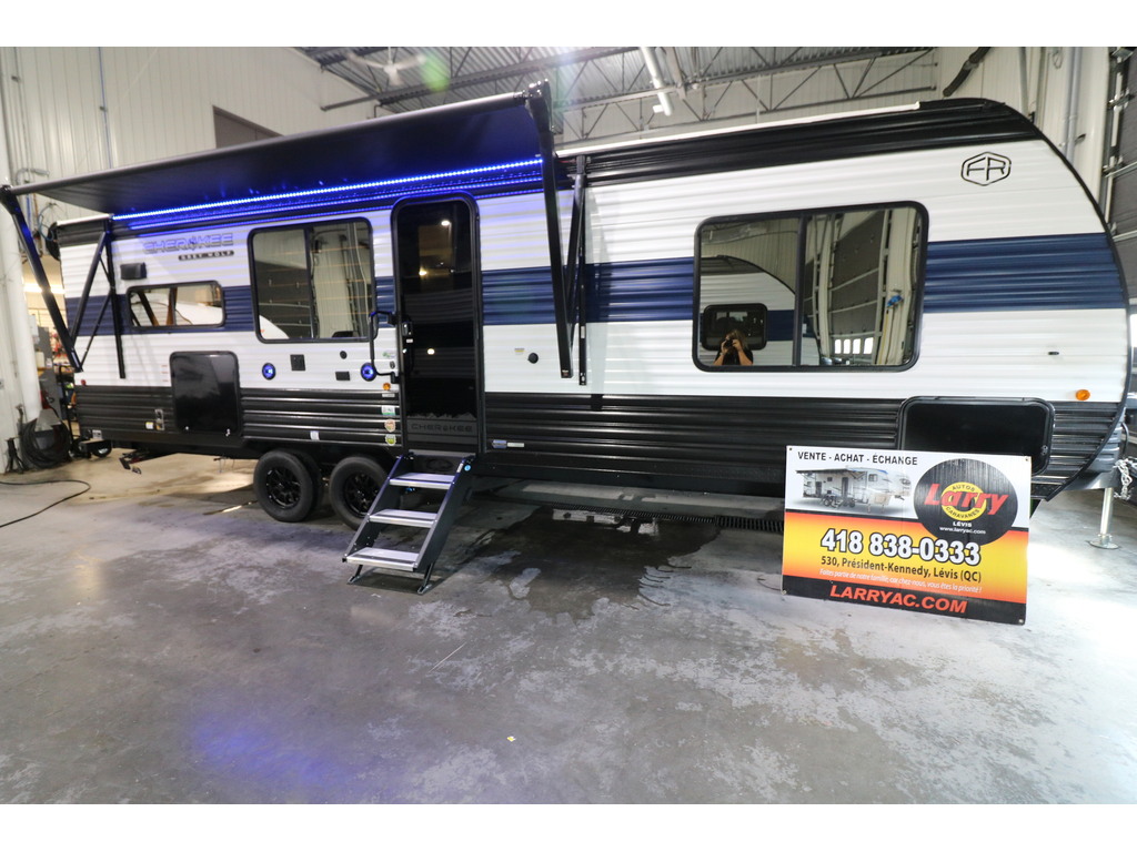 EN INVENTAIRE!!! NOUVEAU MODÈLE !!!! GREY WOLF 26SS 2025 ROULOTTE POUR COUPLE AVEC UN POIDS DE 6100 LIVRES INTÉRIEUR: - Cuisine arrière avec grand évier en stainless, dessus de cuisinière avec dessus vitré, micro-ondes convection, grand réfrigérateur et grand garde-manger - Banquette à côté d'une belle fenestration pour plus de clarté - Fauteuils en cuir inclinables - Foyer électrique - Grand rangement derrière le foyer - Salle de bain centrale avec douche et belle vanité - Chambre des maîtres avant avec lit queen et beaucoup de rangement EXTÉRIEUR: - Marches ultra robustes - Cuisinière extérieure - Coffres de rangement - Jack électrique - Rack arrière - Auvent électrique - Haut-parleurs extérieur PHOTOS À TITRE INDICATIF