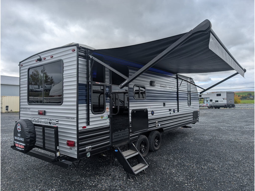 LA GREY WOLF 23MK 2022 PAR FOREST RIVER A UNE LONGUEUR DE 29 PIEDS HORS TOUT, POIDS DE 5274 LBS, PEUT ACCUEILLIR 5 À 6 PERSONNES POUR COUCHER, 1 SLIDE OUT, DINETTE EN U 78X44, SOFA-LIT 68X42, LIT 74X60, RÉFRIGÉRATEUR AVEC CONGÉLATEUR ÉLECTRIQUE, FOUR AVEC CUISINIÈRE À 3 BRÛLEURS, TÉLÉ, FOYER, CUISINE EXTÉRIEURE, BELLE LUMINOSITÉ ET PLUS ENCORE! TRÈS BELLE ROULOTTE AVEC BEAUCOUP DE RANGEMENT! ROULOTTE VENDU INSPECTÉE ET GARANTIE. PASSEZ NOUS VOIR AU 174 ROUTE DU PRÉSIDENT KENNEDY, BEAUCEVILLE, G5X 1P4, À SEULEMENT 40 MINUTES DES PONTS DE QUÉBEC. LIVRAISON DISPONIBLE PARTOUT AU QUÉBEC! PROFITEZ DE NOTRE FINANCEMENT FACILE ET RAPIDE. POUR PLUS D'INFOS, SANS FRAIS 1-888-799-0874, BUREAU 418-774-5066, CELL OU MESSAGE TEXTE KEVIN 418-386-0025 AU PLAISIR DE VOUS SERVIR ET À BIENTÔT! TOUJOURS LES MEILLEURS PRIX DU MARCHÉ