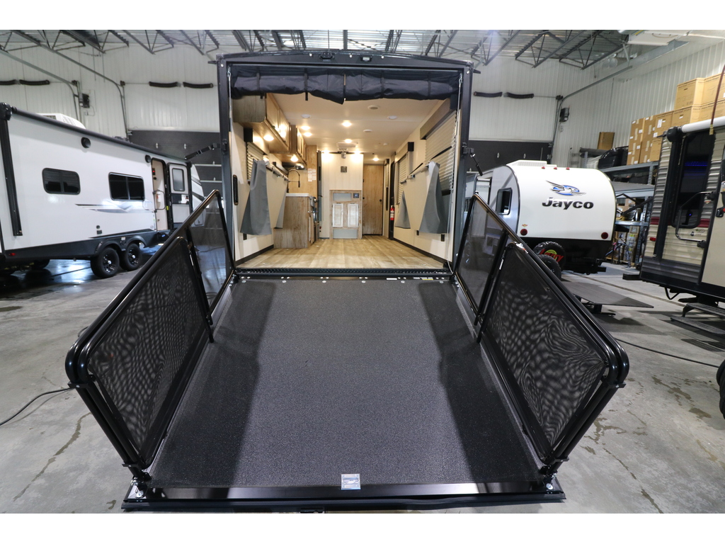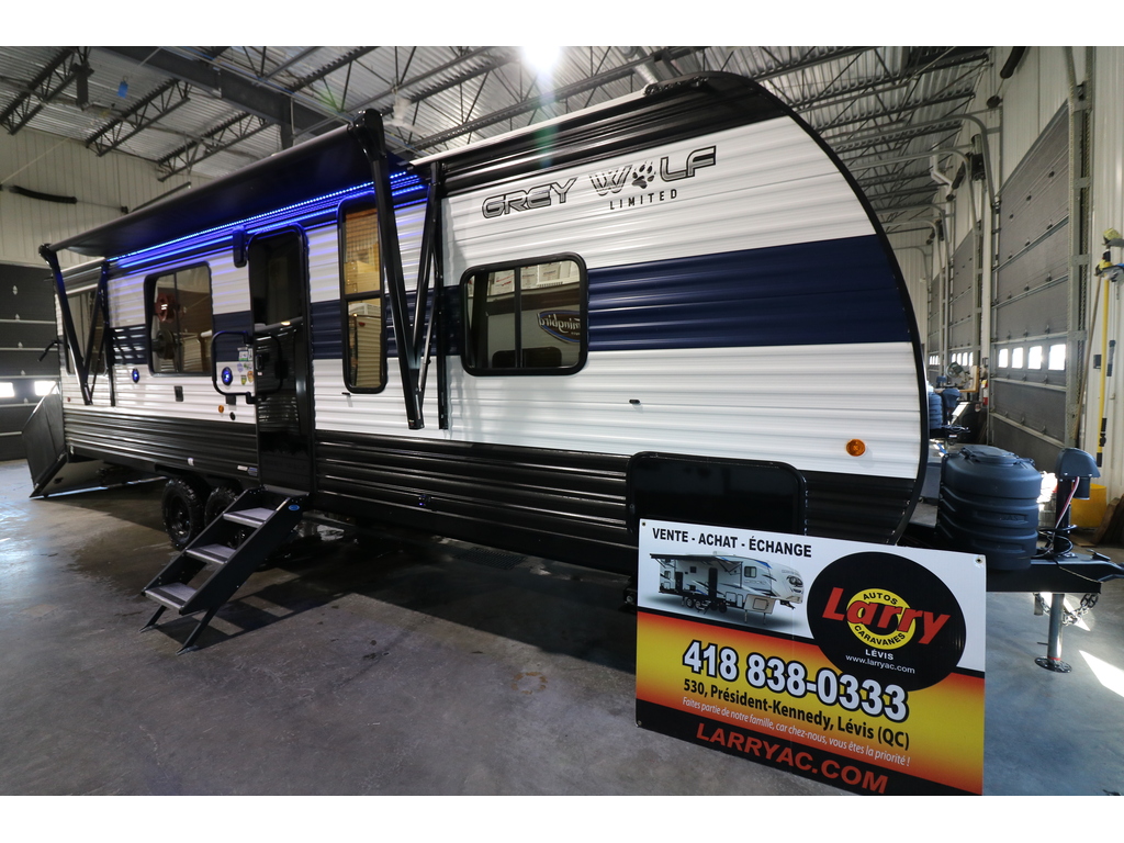 VENDU !!!! Grey Wolf 25RR cargo 2024 Magnifique roulotte cargo. Elle pèse 5000 lbs. Idéale pour transporter facilement votre moto, votre VTT etc. Cette roulotte est super bien équipée avec une cuisine spacieuse munie d'un grand évier, garde-manger et cuisinière. Vous avez une grande table se transformant en lit pour les invités. De plus, elle possède une salle de bain complète avec une superbe douche en coin. La chambre avant est fermée avec lit queen ainsi que des garde-robes de chaque côtés du lit. À l'arrière, la porte cargo pleine grandeur est transformable en patio. À l'extérieur, vous pourrez profiter du bon temps grâce à son auvent électrique et ses coffres de rangements. Elle est absolument à voir. Financement facile sur place. 0 **Photos à titre indicatif**