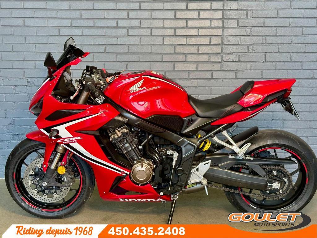 Options : Jauge à essence électriqueHONDA CBR 650 2020 \*\*\* AKRAPOVIC TITANE -BULLE NOIR - SUPPORT DE PLAQUE YOSHIMURA-QUICK SHIFTER- VALEUR DE 2300 $ \*\*\* La CBR 650R combine la sportivité d'une vraie supersport avec le confort d'une routière, propulsée par un moteur 4 cylindres en ligne aussi souple que nerveux. L'échappement Akrapovic en titane sublime le look et libère une sonorité rauque et envoûtante. Une moto équilibrée, racée et prête à enchaîner les virages avec style. Viens avec les pièces d'origines aussi. Moteur 4 cylindres en ligne de 649 cm³ : souple à bas régime, explosif dans les tours. Position de conduite sportive mais accessible : idéale pour un usage quotidien comme pour les sorties dynamiques. Fourche inversée Showa SFF-BP : précision et stabilité dans les virages. Freinage puissant avec doubles disques avant et ABS : sécurité et performance au rendez-vous. Design agressif inspiré de la CBR1000RR : look de supersport, avec une touche de raffinement. Petite scratch sur le réservoir Cette unité est chez Goulet Moto Sports de Ste-Thérèse. Téléphonez au 450.435.2408 Possibilité de financement avec plusieurs institutions financières. 2ième chance au crédit disponible. Goulet Moto Sports est votre concessionnaire moto depuis 1968. Fier représentant officiel des marques HONDA, APRILIA, MOTO GUZZI, VESPA, PIAGGIO, KTM, NIU, SURRON et URAL pour le grand Montréal. Nous avons un énorme choix de moto usagés inspectées par nos professionnels. 2 adresses pour vous servir, soit à Sainte-Thérèse (450.435.2408) et Saint-Jérôme (450.431.6622). Goulet Moto Sports ne peut être tenu responsable d'une omission, d'un délai ou d'une erreur de transcription de l'information. Le prix affiché reflète la condition de l'unité. Pour différentes raisons les prix peuvent différer de ceux indiqués en ligne. Les données sont affichées à titre indicatif seulement et ne peuvent être considérées comme une information contractuelle. Nous vous encourageons vivement à nous consulter pour plus de détails avant de vous déplacer. Des frais tels que taxes, immatriculation, administrations ou autres peuvent s'appliquer. Garantie: Balance de garantie ou 1 mois ---------------------- HONDA CBR 650 2020 \*\*\* AKRAPOVIC TITANIUM - BLACK WINDSHIELD - YOSHIMURA LICENSE PLATE HOLDER - QUICK SHIFTER - $2,300 VALUE \*\*\* The CBR 650R combines the sportiness of a true supersport bike with the comfort of a touring bike, powered by an inline 4-cylinder engine that's as smooth as it is responsive. The Akrapovic titanium exhaust enhances the look and delivers a throaty, captivating sound. A balanced, sleek bike ready to take on corners in style. Comes with stock parts too. 649cc inline 4-cylinder engine: smooth at low revs, explosive at high revs. Sporty yet accessible riding position: ideal for everyday use as well as dynamic rides. Showa SFF-BP upside-down fork: precision and stability in corners. Powerful braking with dual front discs and ABS: safety and performance guaranteed. Aggressive design inspired by the CBR1000RR: supersport look with a touch of refinement. Small scratch on the tank. This unit is at Goulet Moto Sports in Ste-Thérèse. Call 450.435.2408. Financing available with several financial institutions. Second chance credit available. Goulet Moto Sports has been your motorcycle dealer since 1968. Proud official representative of the HONDA, APRILIA, MOTO GUZZI, VESPA, PIAGGIO, KTM, NIU, SURRON, and URAL brands for the greater Montreal area. We have a huge selection of used motorcycles inspected by our professionals. We have two locations to serve you: Sainte-Thérèse (450.435.2408) and Saint-Jérôme (450.431.6622). Goulet Moto Sports cannot be held responsible for any omission, delay, or transcription error. The price displayed reflects the condition of the unit. For various reasons, prices may differ from those indicated online. The data displayed is for informational purposes only and should not be considered contractual information. We strongly encourage you to contact us for more details before visiting. Fees such as taxes, registration, administration, or other charges may apply. Warranty: Balance of warranty or 1 month