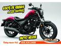 Options : Freins ABSHonda CMX 300 REBEL ABS \*\*\* 630$ DE RABAIS - Prix Final de 6495$ - Moto neuve avec sa pleine garantie Honda \*\*\* La Rebel 300 est la moto cruiser type custom de Honda. Avec son réservoir au look classique, son cadre étroit, sa position très Low Ride, sa fourche d'allure inclinée et ses éléments noirs, la Rebel combine les styles « bobber » et « chopper » - Selle basse (27,2pc) facile à enfourcher avec siège passager - Moteur monocylindre refroidi par liquide et à injection - Lumière et clignotant au DEL - Les gros pneus (130/90-16 à l'avant, 150/80-16 à l'arrière) font contraste au cadre étroit de la Rebel et ajoutent à sa posture solide et confiante. - Des freins à disque avant et arrière produisent un freinage efficace et sûr. Le système ABS de série offre une performance de freinage exceptionnelle \*\*\* FRAIS DE TRANSPORT ET PRÉPARATION INCLUS DANS LE PRIX\*\*\* Cette unité est chez Goulet Moto Sports de Ste-Thérèse. Téléphonez au 450.435.2408 Possibilité de financement avec plusieurs institutions financières. 2ième chance au crédit disponible. Goulet Moto Sports est votre concessionnaire moto depuis 1968. Fier représentant officiel des marques HONDA, APRILIA, MOTO GUZZI, VESPA, PIAGGIO, KTM, NIU, SURRON et URAL pour le grand Montréal. Nous avons un énorme choix de moto usagés inspectées par nos professionnels. 2 adresses pour vous servir, soit à Sainte-Thérèse (450.435.2408) et Saint-Jérôme (450.431.6622). Goulet Moto Sports ne peut être tenu responsable d'une omission, d'un délai ou d'une erreur de transcription de l'information. Le prix affiché reflète la condition de l'unité. Pour différentes raisons les prix peuvent différer de ceux indiqués en ligne. Les données sont affichées à titre indicatif seulement et ne peuvent être considérées comme une information contractuelle. Nous vous encourageons vivement à nous consulter pour plus de détails avant de vous déplacer. Des frais tels que taxes, immatriculation, administrations ou autres peuvent s'appliquer. Essence, Transmission: Manuelle, 6 vitesses, Système de refroidissement: Refroidi au liquide, 1 cylindres, 286.0 CC, Garantie: 1 an ---------------------- Honda CMX 300 REBEL ABS \*\*\* $630 OFF - Final Price $6,495 - New motorcycle with full Honda warranty \*\*\* The Rebel 300 is Honda's custom cruiser motorcycle. With its classic-looking fuel tank, narrow frame, ultra-low-ride stance, raked fork, and black accents, the Rebel combines bobber and chopper styles. - Low seat (27.2 in) for easy entry and exit with passenger seat. - Liquid-cooled, fuel-injected single-cylinder engine. - LED lights and turn signals. - Large tires (130/90-16 front, 150/80-16 rear) contrast with the Rebel's narrow frame and add to its solid, confident stance. - Front and rear disc brakes provide efficient and secure stopping power. The standard ABS system provides exceptional braking performance. \*\*\* TRANSPORTATION AND PREPARATION INCLUDED IN THE PRICE \*\*\* This unit is at Goulet Moto Sports in Ste-Thérèse. Call 450.435.2408. Financing available with several financial institutions. Second chance credit available. Goulet Moto Sports has been your motorcycle dealer since 1968. Proud official representative of the HONDA, APRILIA, MOTO GUZZI, VESPA, PIAGGIO, KTM, NIU, SURRON, and URAL brands for the greater Montreal area. We have a huge selection of used motorcycles inspected by our professionals. We have two locations to serve you: Sainte-Thérèse (450.435.2408) and Saint-Jérôme (450.431.6622). Goulet Moto Sports cannot be held responsible for any omission, delay, or transcription error of the information. The price displayed reflects the condition of the unit. For various reasons, prices may differ from those indicated online. The data displayed is for informational purposes only and cannot be considered contractual information. We strongly encourage you to contact us for more details before traveling. Fees such as taxes, registration, administration, or others may apply. Gasoline, Transmission: Manual, 6 speeds, Cooling System: Liquid cooling, 1 cylinders, 286.0 CC, Warranty: 1 anGarantie : 1 an.