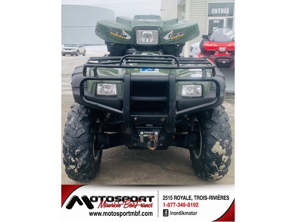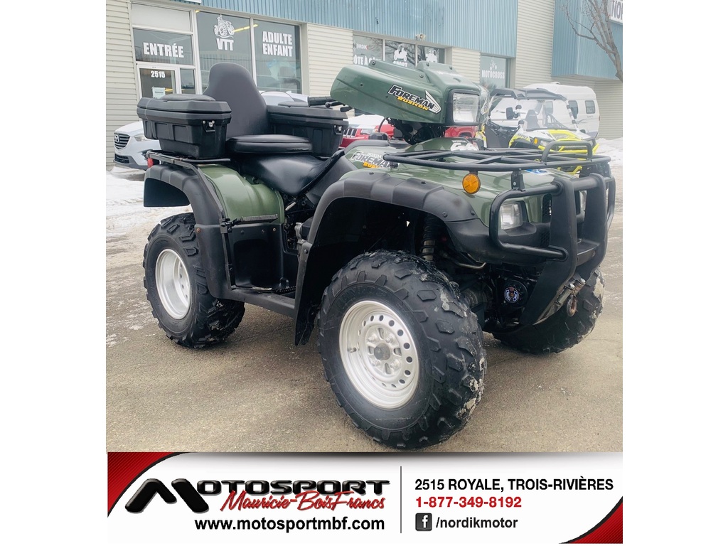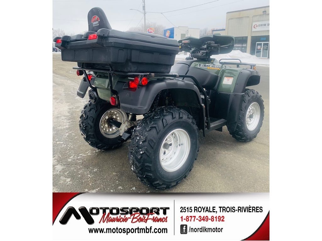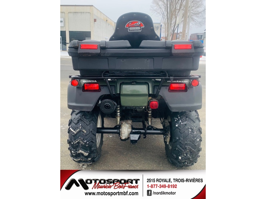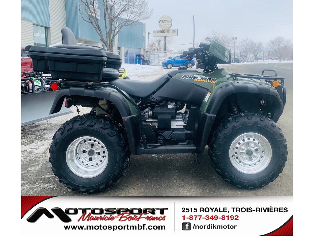 VTT Honda Rubicon 500 « 2001 » à 6,495$ ou 28$** / semaine ! Magnifique VTT Honda Rubicon 500 « 2001 » bien équipé à 6,495$ ou 28$** / semaine ! Ce VTT Honda Rubicon 500 « 2001 » est entièrement équipé avec coffre arrière, repose-pieds, parechoc avant, attache-remorque, repose-pieds pour le passager, pouce et poignées chauffantes, treuil et +++. Ce Rubicon 500 est en excellente condition (1 propriétaire qui faisait du sentier) et il munit d’un moteur à la fois puissant, silencieux et très durable. Sa transmission peut être utilisé en mode manuelle et en mode automatique selon vos besoins. Les pneus arrière sont pratiquement neuf mais les pneus avant sont usés à 50% environ. De plus, la vitre du pare-brise et un petit couvert étaient manquant lors de l’échange. L’excellence de la qualité des VTT Honda n’est plus à faire et la suspension à essieu rigide permet autant le travail que la promenade. Avec 15,000 km au compteur, il pourra vous rendre de précieux service pour les 30 prochaines années. Venez aussi voir notre large inventaire de véhicules neuf de plusieurs marques et véhicules usagés de toutes marques (Artic Cat, Bombardier, BRP Can-AM, Kawasaki, Polaris, Suzuki, Textron Offroad, Yamaha). Nos conseillers se feront un plaisir de vous servir ! MOTOSPORT MAURCIE BOIS-FRANCS 2515 Royale Au cœur de Trois-Rivières depuis 2005 Sans frais 877-349-8192 Site web www.motosportmbf.com CONCESSIONNAIRES DES MARQUES ; APOLLO MOTORS, BERCOMAC, DAYMAK, GIO MOTOR, GO TRAK, HONDA PETITS MOTEURS, LINHAI, NORDIK, SCOOTTERRE, SNOW DOG, TAO MOTORS ET +++ * Prêt ouvert avec terme de 84 mois au taux fixe de 8.97% sans aucun acompteGarantie : Garantie 1 mois