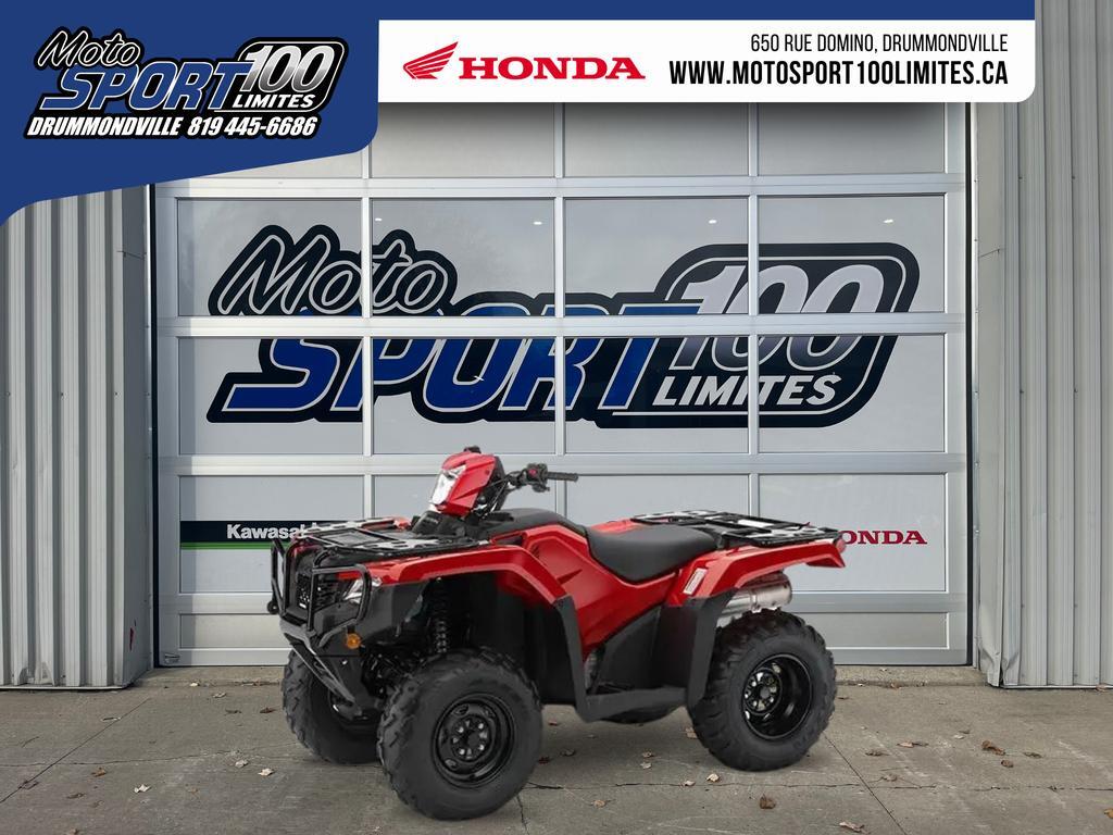 Honda TRX520 Foreman 2025 : Le VTT Incontournable pour les Tâches et les Aventures Tout-Terrain Le Honda TRX520 Foreman 2025 est la solution idéale pour ceux qui recherchent un VTT robuste, fiable et performant. Avec son puissant moteur de 518 cm³ à refroidissement liquide monté longitudinalement, ce modèle assure une propulsion efficace et une capacité exceptionnelle pour accomplir des tâches exigeantes ou affronter des terrains difficiles. Points forts du Honda TRX520 Foreman 2025 • Moteur 518 cm³ à refroidissement liquide : Aligné pour une efficacité optimale de la transmission. • Suspension et maniabilité avancées : Débattement de 185 mm, bras oscillant rigide et réglage de précontrainte pour s'adapter à toutes les conditions. • Polyvalence tout-terrain : Systèmes 2RM/4RM avec différentiel avant verrouillable et mode de changement de vitesse pour les environnements extrêmes. • Durabilité inégalée : Cadre à double berceau en acier léger et rigide, conçu pour une maniabilité précise. • Confort et praticité : Selle rembourrée, démarrage électrique avec démarreur de secours, et tableau de bord intuitif avec aide-mémoire pour l'entretien. • Système de porte-bagages Pro-ConnectMC : Transportez jusqu'à 80 kg à l'arrière et 40 kg à l'avant grâce à des porte-bagages tubulaires en acier et des accessoires Pro-ConnectMC sans outil. Pourquoi Moto Sport 100 Limites ? 1. Votre expert au Centre-du-Québec : Situé à Drummondville, nous proposons les meilleures marques comme Honda pour répondre à vos besoins. 2. Service après-vente de qualité : Pièces et entretien spécialisés pour maximiser la durabilité de votre VTT. 3. Équipe dévouée : Des conseils personnalisés pour vous offrir un VTT qui correspond à votre style de vie et à votre budget. 4. Disponibilité immédiate : Profitez de nos modèles sans attendre, avec des offres claires et sans frais cachés. Disponible dès maintenant chez Moto Sport 100 Limites à Drummondville. Appelez-nous au (819) 445-6686 pour réserver votre Honda TRX520 Foreman 2025 ou obtenir plus d'informations?!