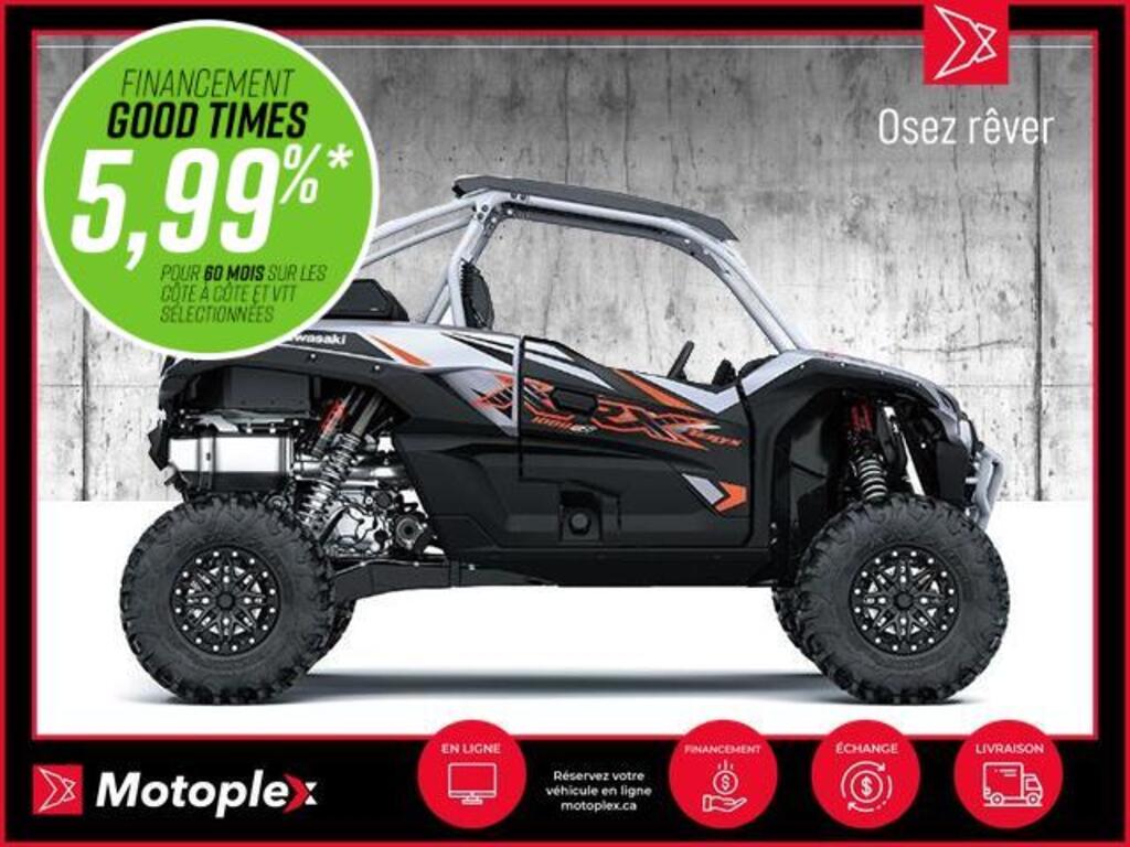 Paiement de 90$/semaine.* TERYX KRX 1000 eS Conçue pour être les meilleurs véhicules côte à côte, la gamme Teryx KRX 1000 ne doit pas être sous-estimée sur les sentiers les plus difficiles au monde. La gamme révolutionnaire des Teryx KRX 1000 inspire confiance grâce à une combinaison de puissance, de performance et de capacité qui domine sur tous les terrains. Ajoutez à cela le niveau de confort sans précédent et la qualité de construction supérieure des véhicules côte à côte Kawasaki et vous avez tout ce qu’il vous faut pour repousser les limites et vivre l’aventure d’une vie. La marque japonaise Kawasaki, largement connue pour ses motos et motomarines à performance inégalée, offre aussi des VTT et côtes-à-côtes tout aussi intéressants. motos et vtts non disponible a la succursale de St-Eustache Prix demandé 34394.0$ ou à 90$/semaine sur financement. Demande de financementÉvaluez votre admissibilité à la 1re, 2e et 3e chance au crédit.Consultez notre site Internet pour les demandes de crédit. PLEASE DON'T HESITATE TO CONTACT US, WE SPEAK ENGLISH AS WELL ! NOUS ACHETONS VOTRE VÉHICULE2012 ET PLUS (MOTO, VTT, VCC, BATEAU, MOTO, MOTOMARINE, VR)TRANSPORT DISPONIBLE LIVRAISON PARTOUT AU PAYSTRANSACTION RAPIDE Mentions légales au financement, consultez notre site Internet. programme KM+ Plan d'entretien 2049$ ce montant est inclus dans le paiement hebdomadaire ce programme couvre les entretiens Vidange de l'huile moteur et remplacement du filtre Ajustement des soupapes Remplacement du filtre a carburant Remplacement des bougies d'allumage Purge du système de refroidissement Purge du système de freinage Vidange de l'huile a fourche Nettoyage du système d'injection/Carburateur INSPECTIONS COUVERTES Niveau des fluides Pneus Phares et clignotants Système de suspension Transmision Entrainement primaire et secondaire Direction Système de freinage Système de commande Cables et leviers Système d'échappement Courroies et chenilles Lubrification Applicable pour les véhicules de loisir de mois de 10 ans et 60 000km 36 mois/ 60 000km 48 mois/80 000km 60 mois/100 000km disponible uniquement chez groupe motoplex