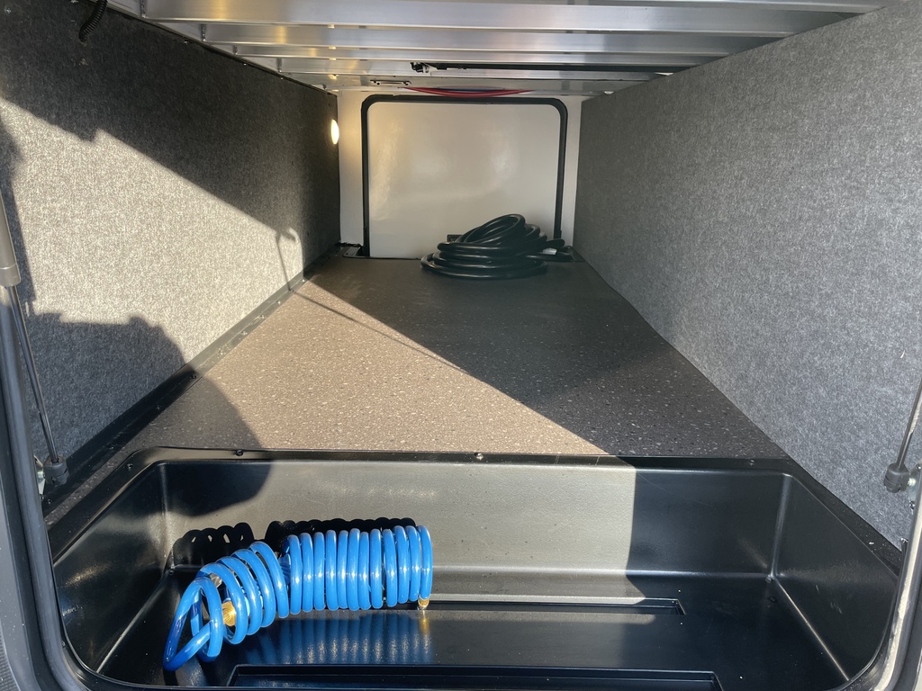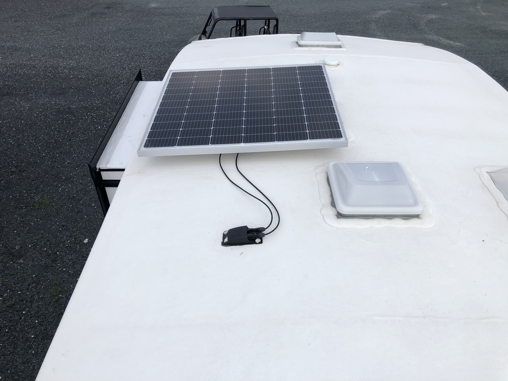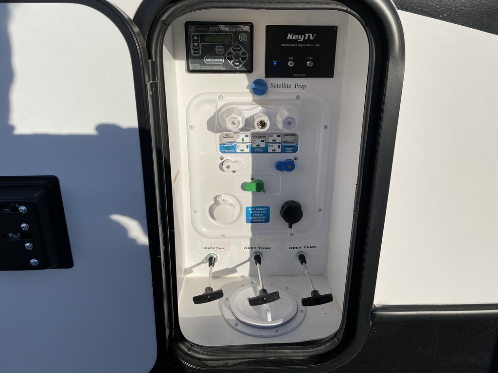 Options : Jantes aluminium, Réservoir de propane, Climatiseur conduit central, Vérin stabilisateur, Roue de secours, Échelle, Douche, Toilette, Prise électrique, Cric électrique, Téléviseur, Chaine stéréo, Prise cable, Micro-onde, Cuisinière, Four, Hotte, Fourneau, Auvent, Chauffe-eau