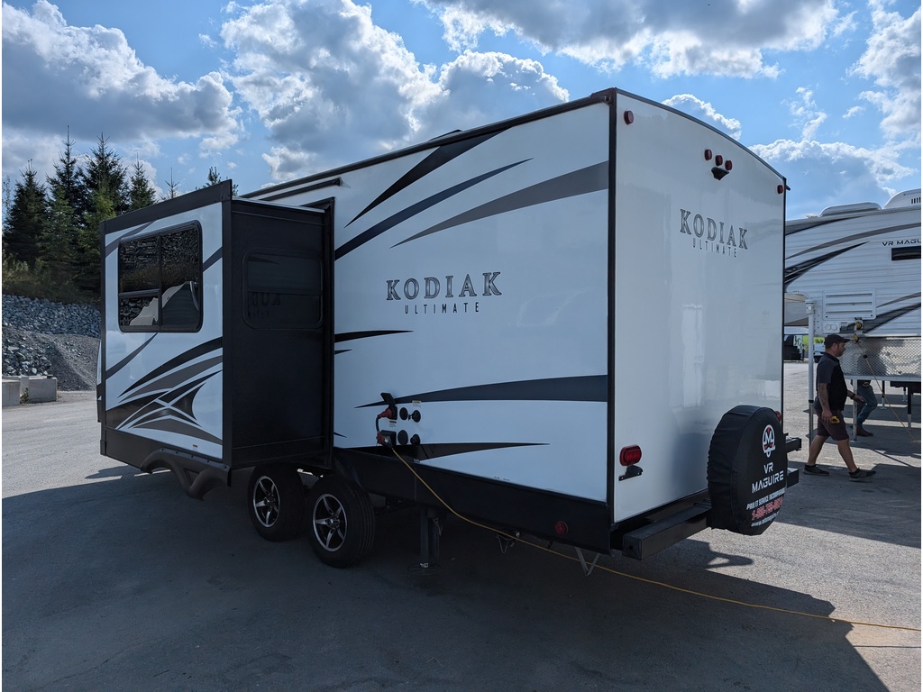 KODIAK 240BHSL 2019, LONGUEUR DE PLAN DE PLANCHER DE 24 PIEDS, LONGUEUR HORS TOUT 27,5 PIEDS, ROULOTTE POUVANT ACCUEILLIR 8 PERSONNES POUR DORMIR, AUVENT ÉLECTRIQUE, CUISINE EXTÉRIEUR COMPRENANT FRIGO ET LAVABO, JACKS AUTO-NIVELLANTS, 2 ESSIEUX, POIDS DE SEULEMENT 5454 LBS, GRAND LIT DE 80'' X 60'', GRANDE BANQUETTE EN U POUVANT FAIRE UN LIT DE 79'' X 42'', 2 BUNK BED DOUBLES DE 74'' X 42'', ESPACES DE RANGEMENT RENDANT L'HABITACLE TRÈS FONCTIONNEL TOUT EN GARDANT LES COMMODITÉS SUIVANTES; GRAND FRIGO AVEC CONGÉLATEUR FONCTIONNANT AU PROPANE/ÉLECTRIQUE, MICRO-ONDES, FOUR AU PROPANE À 3 RONDS AVEC HOTTE, AIR CLIMATISÉ, CHAUFFE-EAU, CHAUFFAGE ET ENCORE PLUS! TRÈS BELLE ROULOTTE AVEC BEAUCOUP DE RANGEMENT! COUP DE COEUR ASSURÉ! VOUS CHERCHEZ UNE BELLE ROULOTTE DE QUALITÉ AU MEILLEUR PRIX ALORS, NOUS AVONS CE QU'IL VOUS FAUT. CELLE-CI EST LA PLUS BELLE DU MARCHÉ. ROULOTTE VENDU INSPECTÉE ET GARANTIE. PASSEZ NOUS VOIR AU 174 ROUTE DU PRÉSIDENT KENNEDY, BEAUCEVILLE, G5X 1P4, À SEULEMENT 40 MINUTES DES PONTS DE QUÉBEC. LIVRAISON DISPONIBLE PARTOUT AU QUÉBEC! PROFITEZ DE NOTRE FINANCEMENT RAPIDE ET FAÇILE. POUR PLUS D'INFOS, SANS FRAIS 1-888-799-0874, BUREAU 418-774-5066, CELL OU MESSAGE TEXTE KEVIN 418-386-0025 AU PLAISIR DE VOUS SERVIR ET À BIENTÔT! TOUJOURS LES MEILLEURS PRIX DU MARCHÉ WWW.AUTOMAGUIRE.COM *** NOUVEAUTÉS CHAQUE SEMAINE ***
