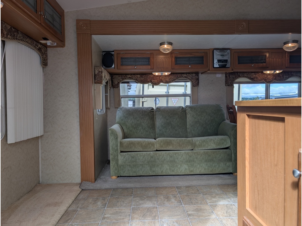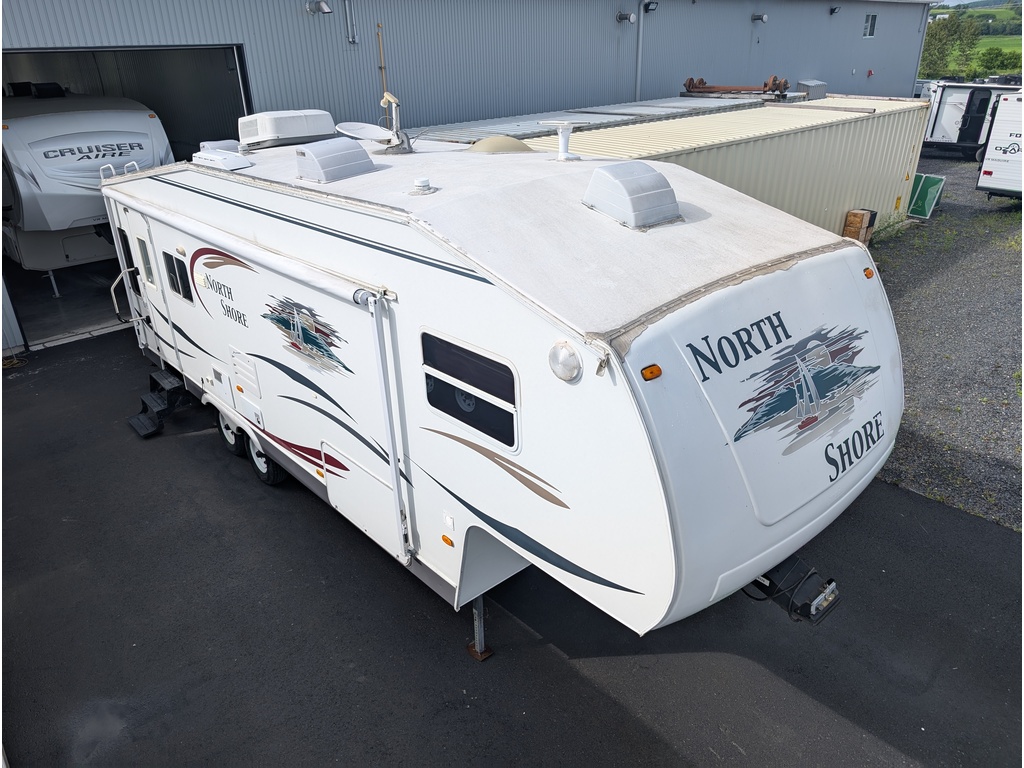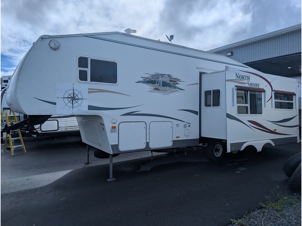 IRRÉCUPÉRABLE NE PEUT PAS RETOURNER SUR LA ROUTE IDÉAL COMME CAMP DE CHASSE FIFTHWHEEL NORTH SHORE 27 RL 2005, 27 PIEDS DE PLAN DE PLANCHER, 1 EXTENSION, ROULOTTE POUVANT ACCUEILLIR JUSQU'À 4 PERSONNES POUR COUCHER, POIDS DE 8052 LBS, ÉCHELLE ARRIÈRE, AUVENT ÉLECTRIQUE, GRAND LIT DE LA CHAMBRE DES MAÎTRES DE 74'' X 60'', DIVAN LIT DE 72X54, TABLE ABVEC 4 CHAISES, ESPACES DE RANGEMENT RENDANT L'HABITACLE TRÈS FONCTIONNEL TOUT EN GARDANT LES COMMODITÉS SUIVANTES; GRAND FRIGO AVEC CONGÉLATEUR FONCTIONNANT AU PROPANE, RADIO, MICRO-ONDES, FOUR AU PROPANE À 3 RONDS, AIR CLIMATISÉ, CHAUFFE-EAU, CHAUFFAGE ET ENCORE PLUS! TRÈS BELLE ROULOTTE AVEC BEAUCOUP DE RANGEMENT! COUP DE COEUR ASSURÉ! VOUS CHERCHEZ UNE BELLE ROULOTTE DE QUALITÉ AU MEILLEUR PRIX ALORS, NOUS AVONS CE QU'IL VOUS FAUT. CELLE-CI EST LA PLUS BELLE DU MARCHÉ. ROULOTTE VENDU INSPECTÉE ET GARANTIE. PASSEZ NOUS VOIR AU 174 ROUTE DU PRÉSIDENT KENNEDY, BEAUCEVILLE, G5X 1P4, À SEULEMENT 40 MINUTES DES PONTS DE QUÉBEC. LIVRAISON DISPONIBLE PARTOUT AU QUÉBEC! PROFITEZ DE NOTRE FINANCEMENT. POUR PLUS D'INFOS, SANS FRAIS 1-888-799-0874, BUREAU 418-774-5066, AU PLAISIR DE VOUS SERVIR ET À BIENTÔT! TOUJOURS LES MEILLEURS PRIX DU MARCHÉ WWW.AUTOMAGUIRE.COM *** NOUVEAUTÉS CHAQUE SEMAINE ***