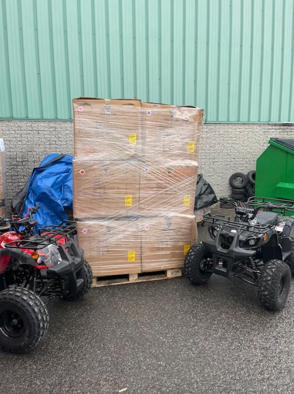 Palette de 6 VTT TForce 125 vendue en boite pour la revente. Disponible dès maintenant à seulement 5000$, soit 833$ l’unité ! Vendu à la palette seulement Livraison possible pour un supplément Autre modèle aussi disponible Le TForce est un véhicule automatique avec reculons avec limitateur de vitesse et contrôle parentale pour un maximum de sécurité. De construction robuste avec ses pneus 8 pouces agressifs, il inclut un moteur 125cc 4 temps et un starter électrique tout en ne demandant que peu d'entretien. Nous recherchons aussi des revendeurs dans votre région ! Appelez Pierre au 450-413-2424 MANIAQUE DISTRIBUTION Nous avons toutes les pièces de VTT et Dirt Bike pour les marques TaoTao Gio Zstar Apollo Venom AWI KDF YCF Odes Lifan Loncin Zongshen SMX AWI Pocket Bike YX et Honda vintage. Nous offrons des pièces d’origine et de performance au meilleur prix! Très grand choix de starter , coil , body , stator , NGK , huiles , CDI , pneu , électronique , câble , direction , batterie et beaucoup plus. Tous les accessoires de protection sont aussi en stock, incluant plastrons, gants, protection cervicale et bottes. Plus de 3000 casques en inventaire de marque PHX ZOX EVS pour adultes et enfants! Vous trouvez moins cher? On égalise les prix (politique du meilleur prix garanti) ! Maniaque distribution : 450-413-2424 345 rue du parc local 104 St-Eustache Ouvert : lundi de 9 h à 17 h Mardi de 9 h à 17 h Mercredi de 9 h à 17 h Jeudi de 9 h à 19 h Vendredi de 9 h à 19 h Samedi de 9 h à 14 h Dimanche ; sur rdv Prix de gros disponible pour revendeur, garage ou concessionnaire. Visa Mastercard Interac