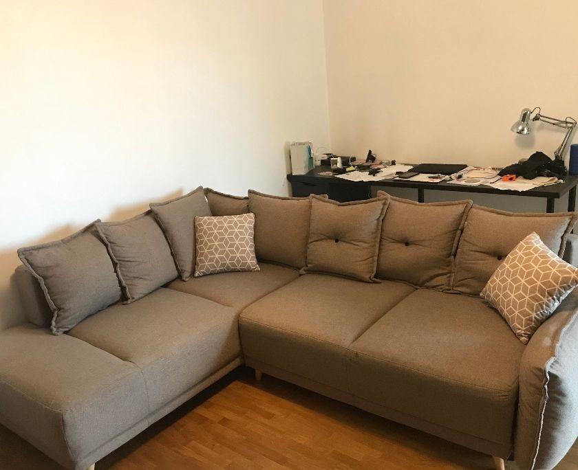 super canapé angle il est convertible et contient un coffre. les coussins sont vendus avec! dimensions : longueur : 236 cm hauteur : 90 cm largeur : 190 cm profondeur d'assise sans coussins : 80 cm profondeur ...
