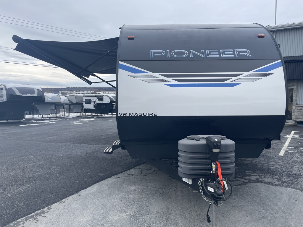 PIONEER RG28 2023 EST UNE ROULOTTE DE VOYAGE CARGO D'UNE LONGUEUR HORS TOUT DE 34 PIEDS, UN POIDS DE 6600 LBS, 1 SLIDE OUT, GRANDEUR DU GARAGE DE 92 POUCES DE LARGE ET DE 9 PIEDS DE LONG + 2 PIEDS DE PENTE POUR UN TOTALE DE 11 PIEDS DE LONGUEUR, PEUT ACCUEILLIR JUSQU'À 6 PERSONNES POUR COUCHER, GRAND LIT DE 80'' X 60'', DINETTE BANQUETTE EN U DE 90'' X 42'', LIT ESPACE CARGO DE 90'' X 70'', RÉFRIGÉRATEUR AVEC CONGÉLATEUR FONCTIONNANT AU PROPANE/ÉLECTRIQUE, FOUR AVEC CUISINIÈRE À 3 BRÛLEUR, MICRO ONDE, AIR CLIMATISÉ ET PLUS ENCORE! TRÈS BELLE ROULOTTE AVEC BEAUCOUP DE RANGEMENT! ROULOTTE VENDU INSPECTÉE ET GARANTIE. À SEULEMENT 40 MINUTES DES PONTS DE QUÉBEC. LIVRAISON DISPONIBLE PARTOUT AU QUÉBEC! PROFITEZ DE NOTRE FINANCEMENT FACILE ET RAPIDE. POUR PLUS D'INFOS, WWW.VRMAGUIRE.COM, SANS FRAIS 1-888-799-0874, BUREAU 418-774-5066, CELL OU MESSAGE TEXTE KEVIN 418-386-0025, AU PLAISIR DE VOUS SERVIR ET À BIENTÔT! **TOUJOURS LES MEILLEURS PRIX DU MARCHÉ**