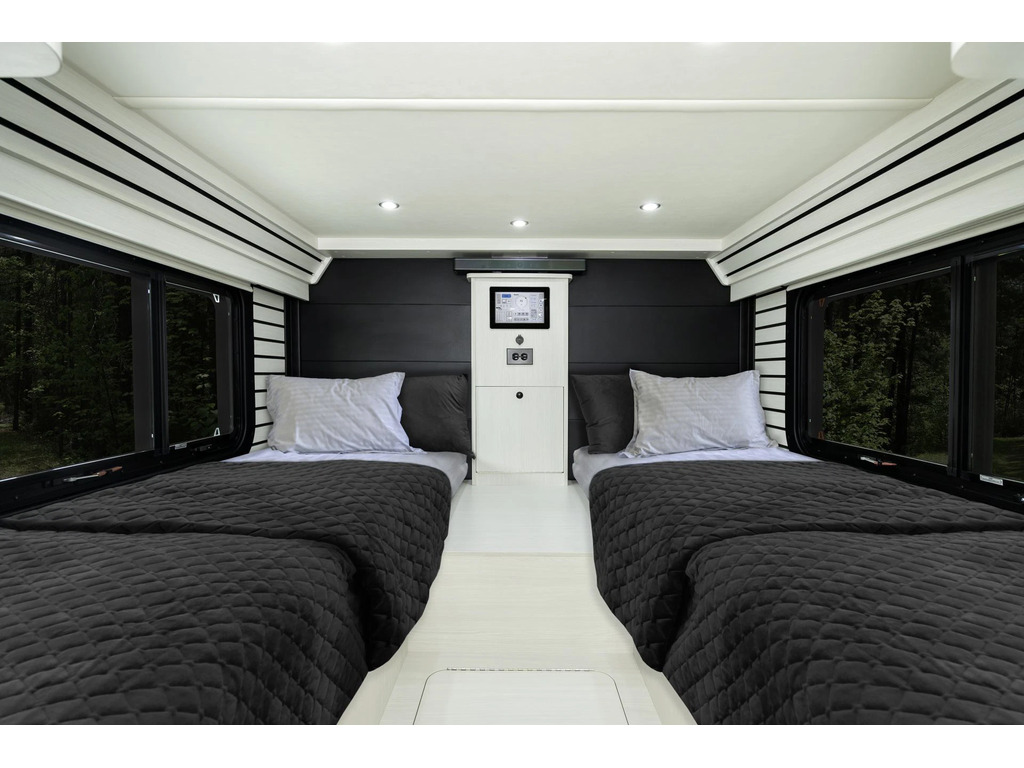 Pleasure-Way Plateau XL TW AWD 40ieme anniversaire Mercedes Couleur extérieur : Brillant silver Partez à l’aventure avec l’arrivée de la nouvelles transmission automatiques à 9 rapports sur le légendaire moteur turbo diesel 4 cylindres 2.0 de Mercedes. Soyez en tout sécurité avec laide freinage d’urgence, assistance de voie, assistance de fatigue, assistance de panneau signalisation, Phares Led haute performance, Parktronic avec capteur avant et arrière et un cruise contrôle adaptif intelligent. Entrée dans la cabine complément redessiner avec sièges chauffantes et électriques, support lombaire ajustable 4 façons, porte coulissante électrique, recharge de téléphone sans fil et la fameuse écran tactile 10.25 haute-résolution avec système de navigation et Bluetooth sans fil. Vous remarquerez l’ajout dun nouveau système de contrôle (2 panneaux) avec écran tactile de 7 pouces. Le système AGS est un programmer auto démarrage de la génératrice si le voltage des batteries est trop faible ou bien pour activer la climatisation centrale. Cette fonction vous sera particulièrement utile si vous voyagez avec des animaux. Léau chaude na maintenant plus de fin ! En effet, Truma AquaGo fournit de leau chaude en continu grâce à un brûleur de 60 000 BTU, qui chauffe leau jusquà 120 degrés Celsius. Les batteries au lithium-ion dune puissance de 600Ah Eco-Ion Earth Smart Lithium . Le style de vie fait foi de tout avec un Pleasure-Way, cest pourquoi un inverter de 3000 W est standard, vous permettant lusage du micro-onde ou même du téléviseur en étant que sur la puissance des batteries. Les caractéristiques qui démarquent Pleasure-Way de la concurrence sont nombreuses, mais elles ne sarrêtent pas ici ! Antenne automatique Winegard Rayzar HDTV, moustiquaires complets optionnels, auvent électrique standard, cuirette UltraLeather garantie 2 ans et bien plus ! Noubliez surtout pas la garantie de 5 ans sur les produits manufacturés Pleasure-Way, vous permettant de dormir sur vos deux oreilles et ce, peu importe où ce vr de rêve vous emmènera. OPTIONS : panneau solaire 500W. Financement disponible www.citecaravane.com 450-623-5050 170 RUE DUBOIS, ST-EUSTACHE, SUR LE BORD DE LA 640! UNE ENTREPRISE FAMILIALE A VOTRE SERVICE DEPUIS 1973