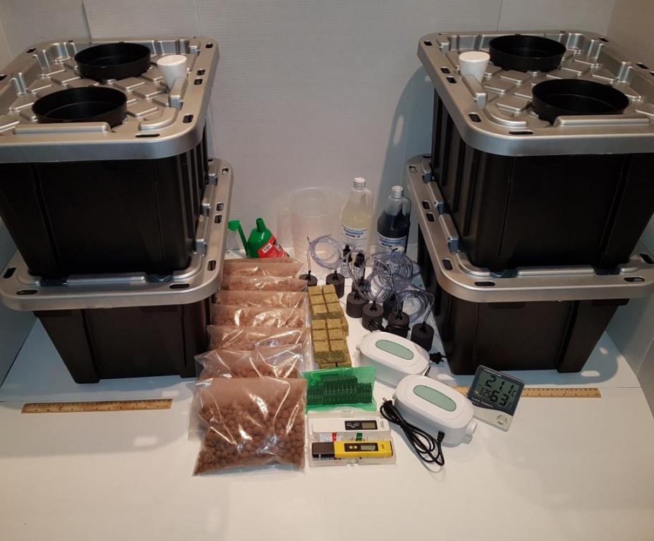 Cultivez jusqu’à 8 gros plants ! 4 Bacs de 2 gros paniers avec couvercle réfléchissant. Incluant les nutriments, instruments de mesures et accessoires. Montage facile en dix minutes! *Les prix sont taxes incluses. Fabriqué au Québec