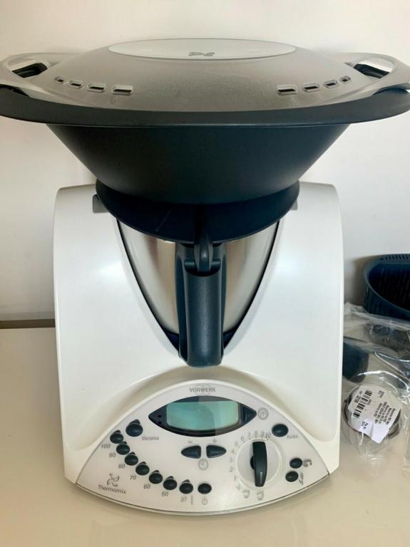 l'appareil de base tm31 : accessoires complets : bol avec poignée, socle fixe couteaux, couvercle de bol avec joint, couteaux avec joint, le panier cuisson, le fouet, la spatule, le bouchon doseur, le varoma, le platea...