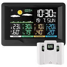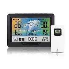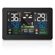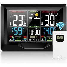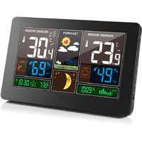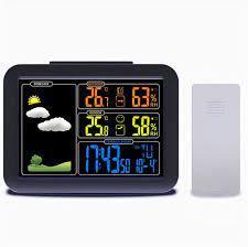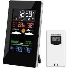 Réveil de station météo numérique multifonction. Avec un écran LCD couleur, un thermomètre et un hygromètre, il peut afficher la pression atmosphérique et les prévisions météorologiques sont prédites par la pression atmosphérique. Prenant en charge un capteur sans fil, vous pouvez placer le capteur dans une pièce extérieure ou autre. Travaillez avec l'alimentation USB, que vous soyez en Europe, en Amérique ou en Océanie. Le design minimaliste moderne est un excellent accessoire et outil. Gare principale: 1.La fonction de prévision météorologique; 2. affichage de la date et du jour de la semaine; 3. heure au format facultatif 12/24 heures; 4. fonction d'alarme quotidienne; 5. fonction de répétition automatique; 6. affichage de phase de lune; Prise de sortie du chargeur 7.USB; 8.3 Niveaux de rétroéclairage de luminosité avec câble d'alimentation USB; 9.L'affichage de la tendance de la température, de l'humidité et du barométrique; 10.Température: - Température alternativement en ° C ou ° F, - Plages de mesure de la température intérieure: 15 ° F (-9,9 ° C) à 122 ° F (50 ° C), - Plages de mesure de la température extérieure: -4 ° F (-20 ° C) à 140 ° F (60 ° C), - Thermomètre extérieur et alerte de gel; 11.Humidité: Intérieur & amp; amp; Plage mesurable extérieure: 20% HR ~ 95% HR; 12.Pression barométrique: - Plages de mesure de la pression barométrique: 17,72 inHg (600 hPa / mb) à 32,50 inHg (1100 hPa / mb), - Pression alternativement en inHg ou mb / hPa / mmHg; 13.Affichage minimum / maximum pour l'humidité et la température. Capteur extérieur sans fil: - Support mural ou support de table, - Fréquence d'émission RF 433,92 MHz, - Portée de transmission de 200 pieds dans une zone ouverte. Source de courant: -Station météo: batterie: 2 x AA (non inclus) ou prise d'alimentation (incluse) -Capteur extérieur sans fil: batterie: 2 x AA (non inclus).