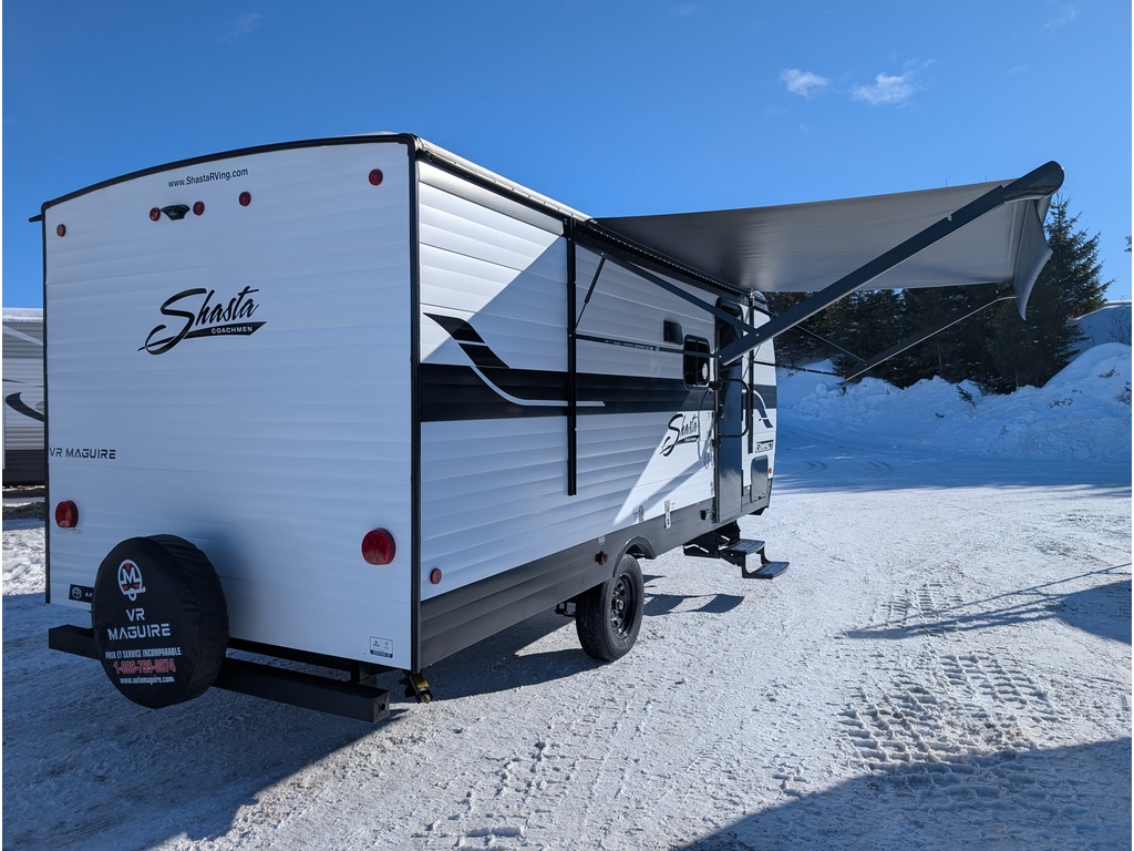 LA CARAVANE DE VOYAGE SHASTA 18DBL 2026 A UNE LONGUEUR HORS TOUT DE 22 PIEDS 11 POUCES POUR UN POIDS DE 3751 LBS, ELLE PEUT ACCUEILLIR JUSQU'À 7 PERSONNES POUR COUCHER, GRAND LIT 74X60, LITS SUPERPOSÉS DOUBLES 48X73, DINETTE BANQUETTE 66X37, RÉFRIGÉRATEUR 8 PI/CU, CUISINIÈRE À 2 BRÛLEURS AVEC FAN, CHAUFFAGE, AIR CLIMATISÉ, AUVENT ÉLECTRIQUE DE 8 PIEDS ET PLUS ENCORE! TRÈS BELLE ROULOTTE AVEC BEAUCOUP DE RANGEMENT! VENDUE INSPECTÉE ET GARANTIE. À SEULEMENT 40 MINUTES DES PONTS DE QUÉBEC. LIVRAISON DISPONIBLE PARTOUT AU QUÉBEC! PROFITEZ DE NOTRE FINANCEMENT FACILE ET RAPIDE. POUR PLUS D'INFOS, WWW.VRMAGUIRE.COM, SANS FRAIS 1-888-799-0874, BUREAU 418-774-5066, CELL OU MESSAGE TEXTE KEVIN 418-386-0025, AU PLAISIR DE VOUS SERVIR ET À BIENTÔT! **TOUJOURS LES MEILLEURS PRIX DU MARCHÉ**