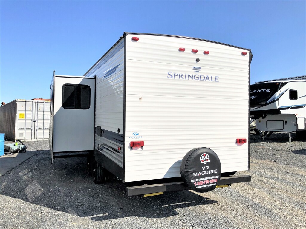 SPECIAL DÉMO GARANTIE ENCORE D'UNE NEUVE SPRINGDALE 251BH 2023, 1 EXTENSION, PETIT FRIGO EXTÉRIEUR, GRANDE BANQUETTE EN U, GARDE-ROBE D'ENTRÉE, JACKS ÉLECTRIQUES AUX 4 COINS, GRAND FRIGO FONCTIONNANT AU 12 VOLTS, ROULOTTE POUVANT ACCUEILLIR JUSQU'À 8 PERSONNES POUR COUCHER, POIDS DE SEULEMENT 6560 LBS, LONGUEUR HORS TOUT DE 29,11 PIEDS, CHAMBRE DES MAÎTRES AVEC GRAND LIT DE 72'' X 60'', 2 BUNK BED DOUBLE DE 74'' X 50'', BANQUETTE/LIT DE 78'' X 42'', BEAUCOUP D'ESPACES DE RANGEMENT RENDANT L'HABITACLE TRÈS FONCTIONNEL TOUT EN GARDANT LES COMMODITÉS SUIVANTES; GRAND FRIGO AVEC CONGÉLATEUR, MICRO-ONDES, FOUR À 3 BRÛLEURS AU PROPANE + HOTTE, AIR CLIMATISÉ, CHAUFFE-EAU, CHAUFFAGE, RADIO LECTEUR CD AVEC PRISE AUXILIAIRE/USB ET ENCORE PLUS! TRÈS BELLE ROULOTTE AVEC BEAUCOUP DE RANGEMENT! COUP DE COEUR ASSURÉ! VOUS CHERCHEZ UNE BELLE ROULOTTE DE QUALITÉ AU MEILLEUR PRIX ALORS, NOUS AVONS CE QU'IL VOUS FAUT. CELLE-CI EST LA PLUS BELLE DU MARCHÉ. ROULOTTE VENDU INSPECTÉE ET GARANTIE. PASSEZ NOUS VOIR AU 174 ROUTE DU PRÉSIDENT KENNEDY, BEAUCEVILLE, G5X 1P4, À SEULEMENT 40 MINUTES DES PONTS DE QUÉBEC. LIVRAISON DISPONIBLE PARTOUT AU QUÉBEC! PROFITEZ DE NOTRE FINANCEMENT À TRÈS BAS TAUX D'INTÉRÊT. POUR PLUS D'INFOS, SANS FRAIS 1-888-799-0874, BUREAU 418-774-5066, CELL OU MESSAGE TEXTE KEVIN 418-386-0025 AU PLAISIR DE VOUS SERVIR ET À BIENTÔT! TOUJOURS LES MEILLEURS PRIX DU MARCHÉ WWW.AUTOMAGUIRE.COM *** NOUVEAUTÉS CHAQUE SEMAINE ***