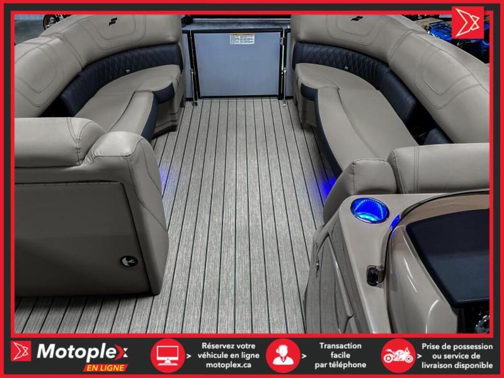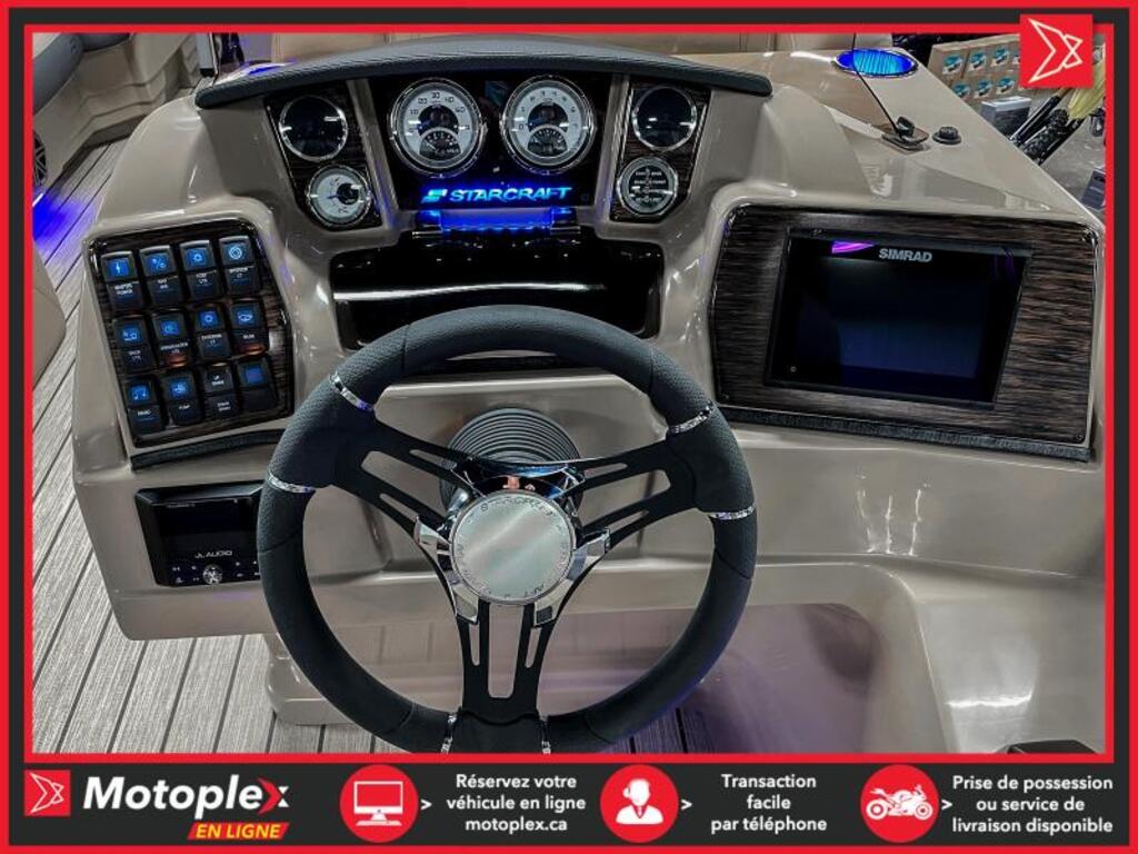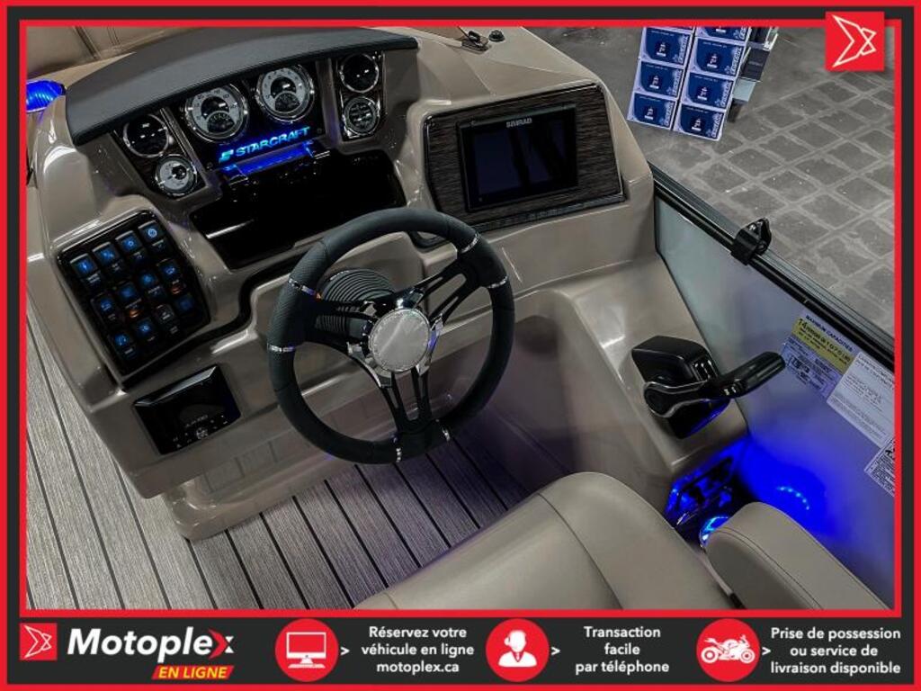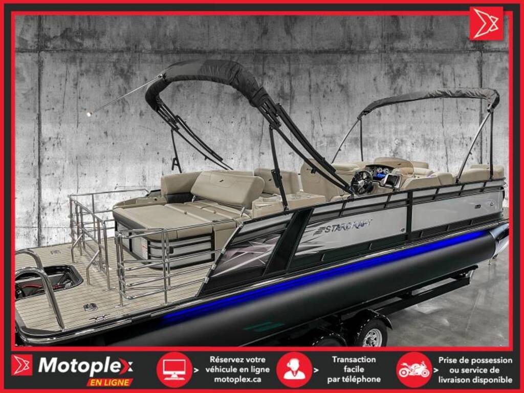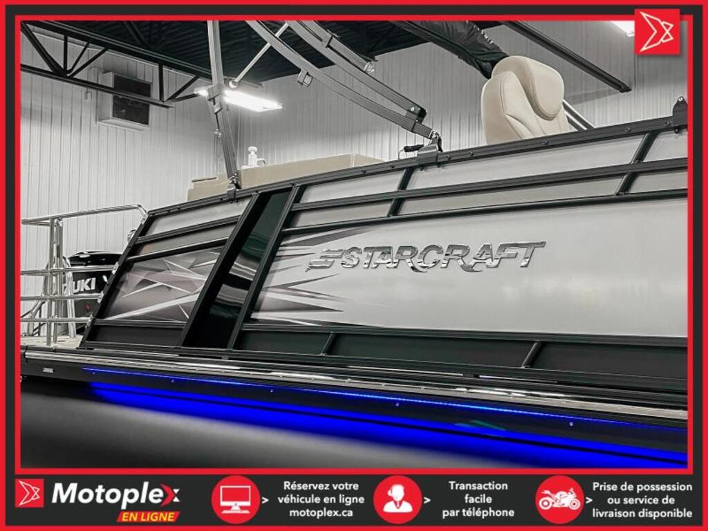 243$/sem.*programme élite inclus Ponton SLS-5Q Moteur 350 hp inclus • Moteur suzuki 350 hp 2022 • Longueur : 25,10 pied • Moteur maximal 350hp et 14 passagers • Tube de 25 pouce • Plancher Teak weave • Quille et rambarde peinturé noir • Éclairage sous le pont babbito • 3 quilles avec aileron sport sous les quilles et sous plancher protégé de plaque d’aluminium. • Porte gobelet illuminer • Toit bimini • Ensemble audio plus 225 • Indicateur de trim. • Cadrant numérique • Simrad G07 GPS écran tactile • Comptoir avec rangement et lavabo • Control Suzuki précision • Lumière d’amarrage • Lumières de navigation • 1 table • Salle d’habillage • Radio am fm usb auxiliaire input Bluetooth • Prise 12 volts • Lumière de courtoisie • Volant verona inclinable • Intérieur tan deux ton • Steering seastar hydraulique La marque Starcraft Marine, chez Groupe Motoplex, offre des pontons et des bateaux stylés, polyvalents et sécuritaires à un excellent rapport qualité prix. Avec plus de 100 ans d’expérience en fabrication de bateau, Starcraft Marine est une marque établie et de confiance. De plus, une garantie à vie limitée plus une garantie complète de six ans assurent la durabilité de votre bateau. Prix demandé 129995.0$ ou à 243$/semaine sur financement.**Prix de vente promotionnel sur financement** Demande de financementÉvaluez votre admissibilité à la 1re, 2e et 3e chance au crédit.Consultez notre site Internet pour les demandes de crédit. PLEASE DON'T HESITATE TO CONTACT US, WE SPEAK ENGLISH AS WELL ! NOUS ACHETONS VOTRE VÉHICULE2012 ET PLUS (MOTO, VTT, VCC, BATEAU, MOTO, MOTOMARINE, VR)TRANSPORT DISPONIBLE LIVRAISON PARTOUT AU PAYSTRANSACTION RAPIDE Mentions légales au financement, consultez notre site Internet. programme KM+ Plan d'entretien 2049$ ce montant est inclus dans le paiement hebdomadaire ce programme couvre les entretiens Vidange de l'huile moteur et remplacement du filtre Ajustement des soupapes Remplacement du filtre a carburant Remplacement des bougies d'allumage Purge du système de refroidissement Purge du système de freinage Vidange de l'huile a fourche Nettoyage du système d'injection/Carburateur INSPECTIONS COUVERTES Niveau des fluides Pneus Phares et clignotants Système de suspension Transmision Entrainement primaire et secondaire Direction Système de freinage Système de commande Cables et leviers Système d'échappement Courroies et chenilles Lubrification Applicable pour les véhicules de loisir de mois de 10 ans et 60 000km 36 mois/ 60 000km 48 mois/80 000km 60 mois/100 000km disponible uniquement chez groupe motoplex