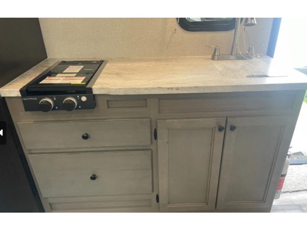 Options : Réservoir de propane, Roue de secours, Échelle, Douche, Toilette, Canapé-lit, Détecteur LPG/CO2, Téléviseur, Micro-onde, Hotte, Fourneau, Auvent, Chauffe-eau