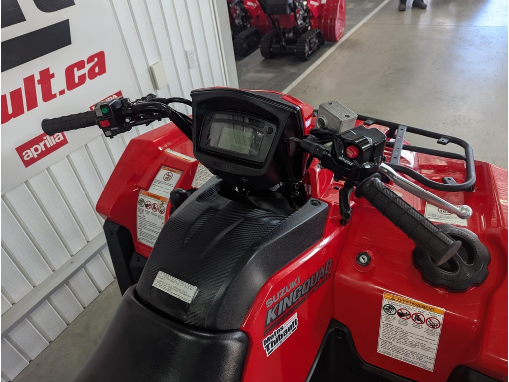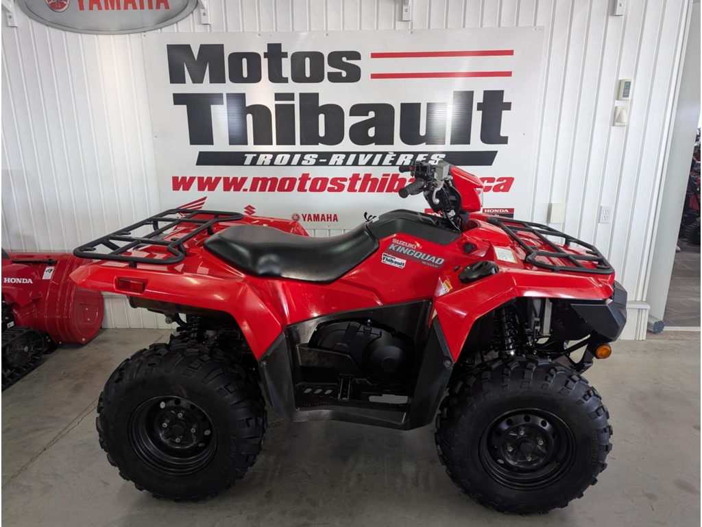 2021 SUZUKI KINGQUAD ROUGE ***SANS POWER STEERING*** TRÈS PROPRE BAS MILAGE , 2033 km * Chez MotosThibault tout nos véhicules usagés sont inspectés . *MOTOS THIBAULT situe a Trois-Rivieres dans le secteur Cap-de-la-Madelaine en Mauricie 205, rue Dessureault, Trois-Rivieres G8T 2L7 819-375-2222. Prenez la sortie 203 boul. Thibeau Sud. Venez decouvrir notre vaste inventaire de Motos ainsi que VTT neufs et usages de HONDA, YAMAHA, SUZUKI, APRILIA, VESPA, PIAGGIO . Visiter notre site web au www.motosthibault.ca