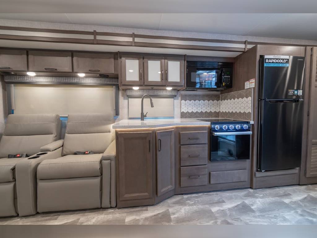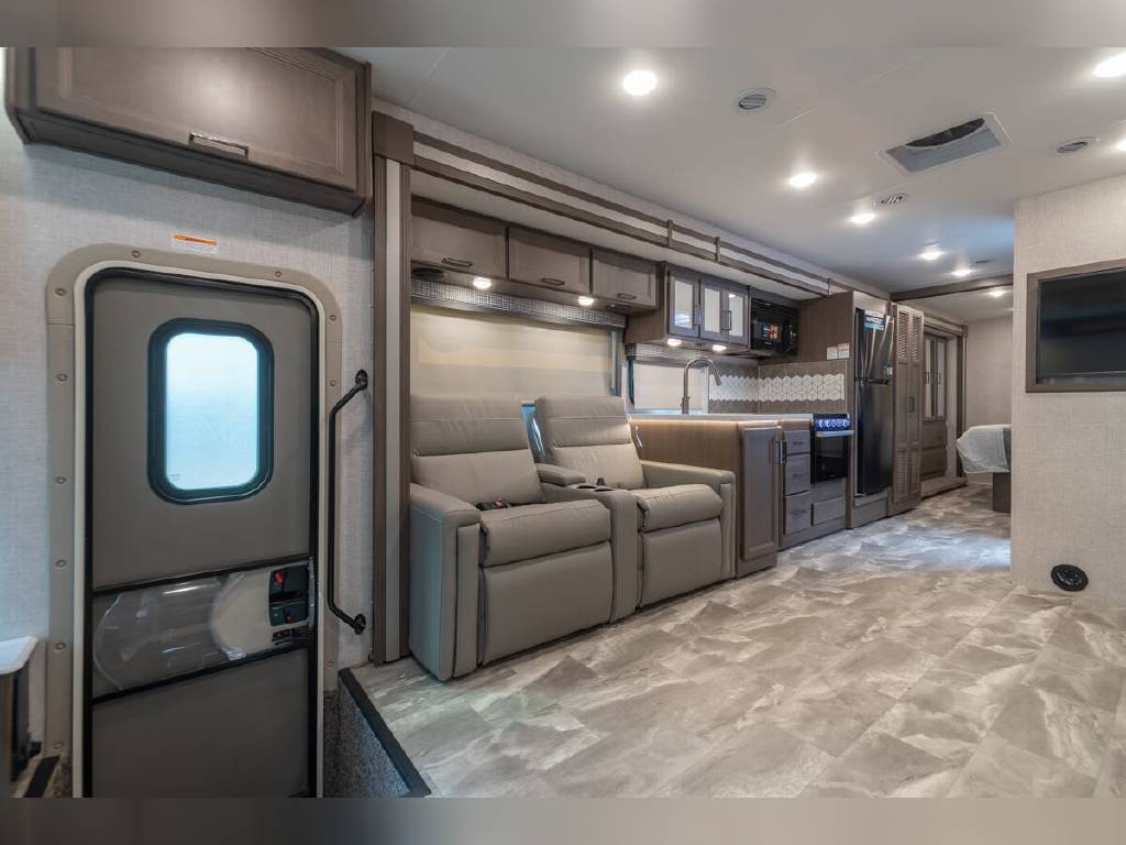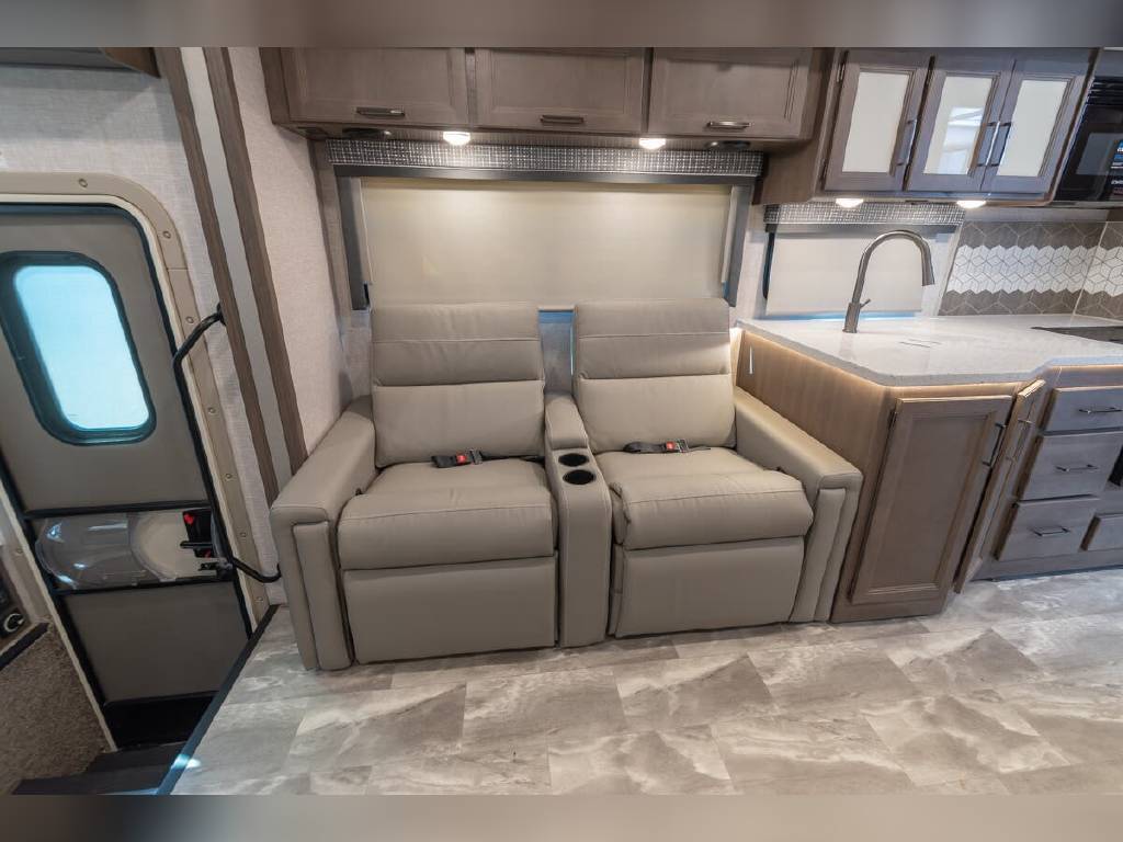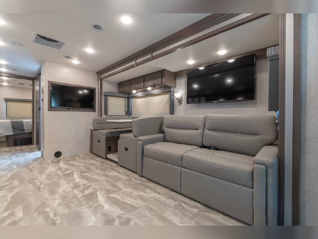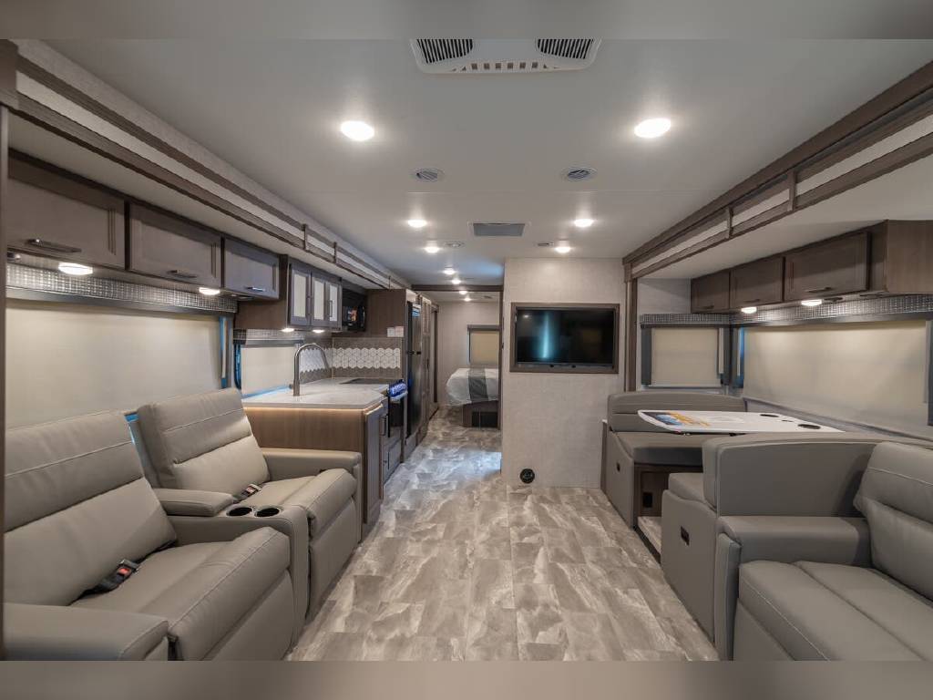 Options : Réservoir de propane, Régulateur de vitesse, Caméra Marche arrière, Douche, Toilette, Canapé-lit, Prise électrique, Téléviseur, Chaine stéréo, Micro-onde, Cuisinière, Hotte, Fourneau, Auvent, Chauffe-eauMotorisé Classe A Windsport 34R 2024 Moteur Triton 7.3L V8 335HP à essence avec châssis Ford F-53, Transmission automatique Torq Shift 6 vitesses Construction et extérieur: Châssis Ford® F-53 8 000 livres. Attelage de remorque avec connecteur rond à 7 broches Fonctionnalité chaude Crics de mise à niveau automatique avec commandes tactiles Fonctionnalité chaude Plancher en acier tubulaire soudé Construction de cage de toit et de paroi latérale en aluminium tubulaire soudé Toit, murs et sol stratifiés Vacu-Bond avec isolation en mousse de bloc Capuchons avant et arrière monobloc en fibre de verre Pare-brise monobloc Extérieur HD-MAX® avec ensemble graphique Extérieur HD-MAX® avec ensemble graphique et peinture partielle Compartiments de stockage Rotocast Entreposage au sous-sol Portes de compartiment encastrées à charnières latérales Toit extérieur monobloc haut de gamme Auvent de terrasse électrique avec éclairage à DEL intégré Fonctionnalité chaude Auvent de porte d'entrée électrique Auvent(s) coulissant(s) Échelle de toit Marche d'entrée électrique Porte d'entrée avec serrure à pêne dormant Poignée de barre d'appui extérieure Fenêtres sans cadre Fenêtres à double volet sans cadre Attache polyvalente Pet-Link™ Cuisine: 12 pi. Réfrigérateur résidentiel de 3,5 pi3 Table de cuisson/four à gaz à 3 brûleurs avec couvercle en verre pliant Four à micro-ondes à plage étendue de 30 po Fonctionnalité chaude Comptoirs de cuisine à surface solide Fonctionnalité chaude Dosseret décoratif en verre et carreaux Grand évier en acier inoxydable à double cuve avec robinet à une poignée et pulvérisateur rétractable Guides de tiroir à roulement à billes Ventilateur de grenier 12 volts avec couvercle Éclairage d'accentuation à DEL pour comptoir de cuisine Chambre et salle de bain : Lit King Size Prise 12V de la chambre pour machine CPAP Prise 110V de la chambre sur l'onduleur pour machine CPAP Tête de lit, couvre-lit et taies d'oreiller design Toilette en porcelaine à chasse au pied Puits de lumière dans la douche Douche avec porte vitrée Comptoirs en stratifié Divertissement: Téléviseur LED 39 pouces dans le salon Téléviseur LED 49 pouces dans le salon Téléviseur LED 32 pouces dans la chambre Téléviseur extérieur 32 pouces sur support pivotant avec barre de son et radio Bluetooth® intégrées Fonctionnalité chaude Lecteur Blu-ray™ dans le salon Diffusion vidéo HDMI Prêt pour la télévision par câble Antenne de télévision numérique Ports de chargement USB (chambre et salon) Haut-parleur dans les frais généraux du canapé Support de montage satellite dans le toit Électricité et plomberie: Générateur de gaz Onan® RV QG 5500 Cordon d'alimentation Shoreline détachable de 50 ampères Climatiseurs à double toit Commutateur de transfert automatique avec protection de l'alimentation Démarrage automatique du générateur (AGS) Interrupteur de déconnexion de la batterie Deuxième batterie de maison auxiliaire Connexion LP extérieure Préparation solaire (inclut le contrôleur d'énergie solaire) Fonctionnalité chaude Système de charge solaire de 100 watts avec contrôleur de puissance Plateau de batterie pouvant contenir jusqu'à quatre batteries Chauffe-eau gaz/électrique DSI de 6 gallons Système de dérivation du chauffe-eau Réservoirs fermés et chauffés Système de rinçage du réservoir noir Système de recyclage d'eau chaude Showermiser Préparation pour laveuse/sécheuse empilable Fonctionnalité chaude Démarrage automatique du générateur Fonctionnalité chaude Onduleur de 1800 watts Fonctionnalité chaude Douche extérieure Bouchon d'aération du réservoir de rétention 360 Siphon® RV Fonctionnalité chaude Vidange de réservoir d'eau douce de 1 po Système de contrôle de câblage multiplex Rapid Camp+® avec Bluetooth et écran tactile 7 pouces Fonctionnalité chaude Prolongateur Wi-Fi Winegard® ConnecT™ +4G **** Les frais d'administration de 399$ sont inclus dans le prix de vente du véhicule ***