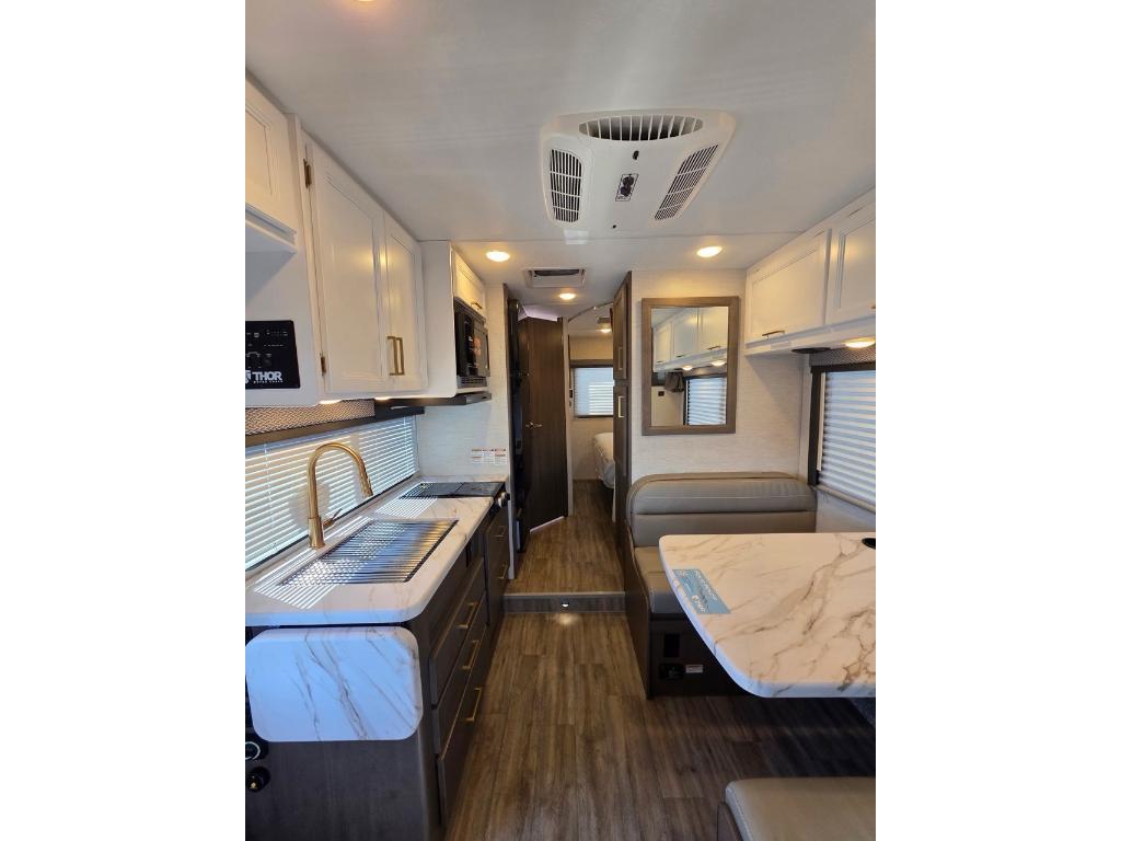 THOR FOURWINDS 22Z 2026 Marque du châssis Gué Type de moteur V8 Modèle de châssis E350 Cylindres 8 Puissance 325 ch à 3 800 tr/min Couple 450 pi-lb à 3 800 tr/min Déplacement 7,3 litres Type de carburant Gaz Besoins en carburant Régulier Type de carburation Injection de carburant Turbocompressé Non Suralimenté Non Transmission Marque de transmission TorqShift Type de transmission Automatique à 6 vitesses Surmultipliée Oui Transmission Type de transmission 4X2 Dimensions Longueur 24,08 pi (289 po) Largeur 8,25 pi (99 po) Hauteur 11 pi (132 po) Hauteur intérieure 7 pi (84 po) Empattement 13,17 pi (158 po) Poids Capacité de remorquage 8 000 livres PNBV 12 500 livres Capacités Capacité de carburant 55,0 gal. Capacité de stockage 198,6 gal. Réservoirs de rétention Nombre de réservoirs d'eau douce 1 Capacité totale du réservoir d'eau douce 40,0 gal. Nombre de réservoirs de rétention d'eaux grises 1 Capacité totale du réservoir d'eaux grises 35,0 gal. Nombre de réservoirs de rétention des eaux noires 1 Capacité totale du réservoir d'eaux noires 30,0 gal. Réservoir(s) de propane Nombre de réservoirs de propane 1 Capacité totale du réservoir de propane 9,6 gal. Capacité totale du réservoir de propane 41 livres .Longueur de l'auvent 15 pi (180 po) électrique. Nombre maximal de sommeils 6. Centre du VR : Votre expert en véhicules récréatifs au Québec Découvrez le plus vaste inventaire de VR neufs et d'occasion au meilleur prix. Que vous cherchiez une roulotte, une caravane à sellette (fifth wheel), une caravane-portée, un motorisé ou une remorque, notre équipe vous propose les plus grandes marques : Roulottes et Fifth Wheels : Rockwood, Flagstaff, Cougar, Springdale, Sunset Trail, Chaparral, Columbus, Impression, Kodiak, Coleman, E-Pro, Cruiser RV. Motorisés (Classe A, B, C) : Axis, Hurricane, Fleetwood, Four Winds, Coachmen Cross Trail, Prism, Echelon, Outlaw, Beyond, Nova. Remorques et Équipements : NN, Apogée, Armorteck et génératrices Ducar ou Cummins. Bien plus que de la vente : Un service complet Département de pièces et boutique : Un inventaire massif de pièces de remplacement et d'accessoires de camping pour améliorer votre confort. Service et réparation : Un centre de service spécialisé pour l'entretien et la réparation de vos unités, assuré par des techniciens experts. Financement : Profitez de nos solutions de financement avantageuses directement sur place. Un modèle vous intéresse ou vous avez besoin d'un entretien ? Contactez-nous pour une demande d'information ou passez nous voir en succursale pour une visite ! Note : Les photos et options peuvent différer de la réalité.