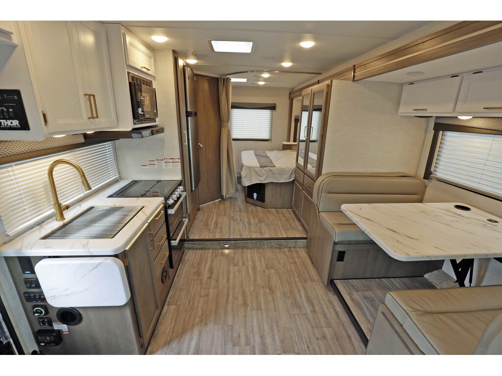 Thor Motor Coach Fourwinds 24F Classe C Extérieur : Silverstream , intérieur Nantuckblue + Malibu environ 24 pieds 11 pouces de longueur avec le châssis Ford de 7,3 L Les options incluent des sièges conducteur et passager en similicuir, des caméras de recul et de latérale, un filet de sécurité pour enfants dans la cabine, une deuxième batterie auxiliaire, une douche extérieure, des réservoirs chauffants, un panneau solaire de 100 watts, un réfrigérateur cube de 10 pieds. Le VR Thor Fourwinds de classe C possède une liste incroyable de caractéristiques standard, notamment des vitres et des serrures électriques, un auvent de terrasse électrique avec éclairage LED intégré, un centre multimédia intégré au tableau de bord AM/FM et Bluetooth, une ventilation électrique dans la baignoire, une lucarne au-dessus de la douche, un générateur de 4 000 watts. A/C et bien plus encore 1154$+txs/MOIS www.citecaravane.com 450 623-5050 170 rue dubois , St-eustache J7P 4W9 Thor Motor Coach Fourwinds Class C RV 24F Exterior : Silverstream Interior Nantuckblue + Malibu approximately 24 feet 11 inches in length featuring the Ford chassis 7.3L Options include leatherette driver & passenger chairs, back up & side view cameras , cabover child safety net, second auxiliary battery, solar charging system, outside shower, holding tanks w/ heat pads, 100 Watt solar panel , 10ft cube fridge The Thor Fourwinds Class C RV has an incredible list of standard features including power windows and locks, power patio awning with integrated LED lighting, in-dash media center AM/FM & Bluetooth, power vent in bath, skylight above shower, 4000 Watt generator,A/C and so much more 1154$+txs/MOIS www.citecaravane.com 450-623-5050 170 rue dubois , St-eustache J7P 4W9