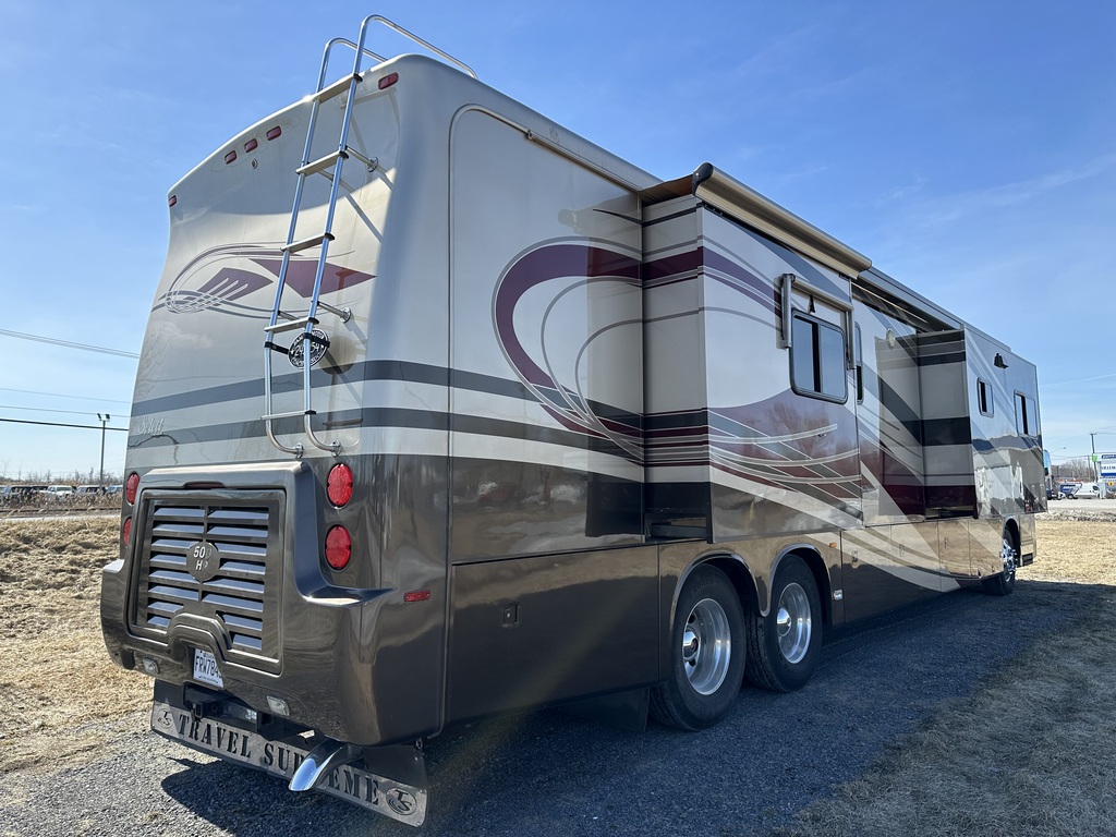 Options : Suspension pneumatique, Génératrice au diesel, Climatiseur conduit central, Sièges électriques, Régulateur de vitesse, Volant inclinable, Caméra Marche arrière, Cric hydraulique, Échelle, Attache-remorque, Douche, Toilette, Laveuse, Sécheuse, Lit arrière, Téléviseur, Antenne pour téléviseur, Micro-onde, Auvent, Chauffe-eauConsignation...payez une seule taxes !! Superbe motorisé classe A 2005 Travel Supreme Select 40DS04 avec moteur CUMMINS 500HP, 4 extensions, seulement 67 532 KM au compteur, génératrice ONAN 12.5, panneau solaire 4000 watts, Aspirateur sous le sofa et encore plus... We also speak english Voir www.superieurvr.com pour plus de photos Un véhicule récréatif demeure la meilleure manière de voyager en toute sécurité en protégeant votre santé et celle des personnes qui vous sont chères! Financement disponible et échange accepté Appelez nous sans frais au 1-888-756-0481 Supérieur VR c’est 15 ans d'expérience à votre service. Des techniciens formés, accrédités et expérimentés. C’est 10 baies de service: mécanique, habitation, esthétique, atelier de carrosserie complet avec chambre à peinture grand format (50 pieds). Centre de service autorisé pour les génératrices Onan Cummins, systèmes de chauffage Aqua Hot, Hydro hot, precision temps et Oasis. Nous vendons des motorisés usagés certifiés. Nous avons aussi des motorisés neufs de marque Coachmen Sportscoach, Encore, Mirada et Pursuit. Nous sommes aussi détaillant du manufacturier Gulfstream pour les marques Conquest et BT CRUISER. Sans oublier le manufacturier Holiday Rambler pour les marques Admiral, Eclipse, Invicta et Vacationer. De plus, nous avons un vaste choix de pièces sur place.Garantie : Motorisé en consignation...aucune garantie légale offert par le commerçant. Garantie supplémentaire disponible.